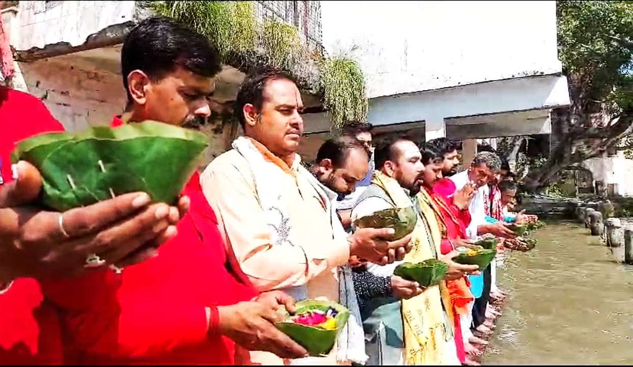 हरिद्वार। हर की पौड़ी के निकट रामघाट पर युवा तीर्थ पुरोहितों द्वारा इजराइल का समर्थन करते हुए वहां हमास के हमले में मारे गए निरपराध नागरिकों की मृत आत्माओं की शांति एव मौक्ष के लिए प्रार्थना कर दीप दान किया।
