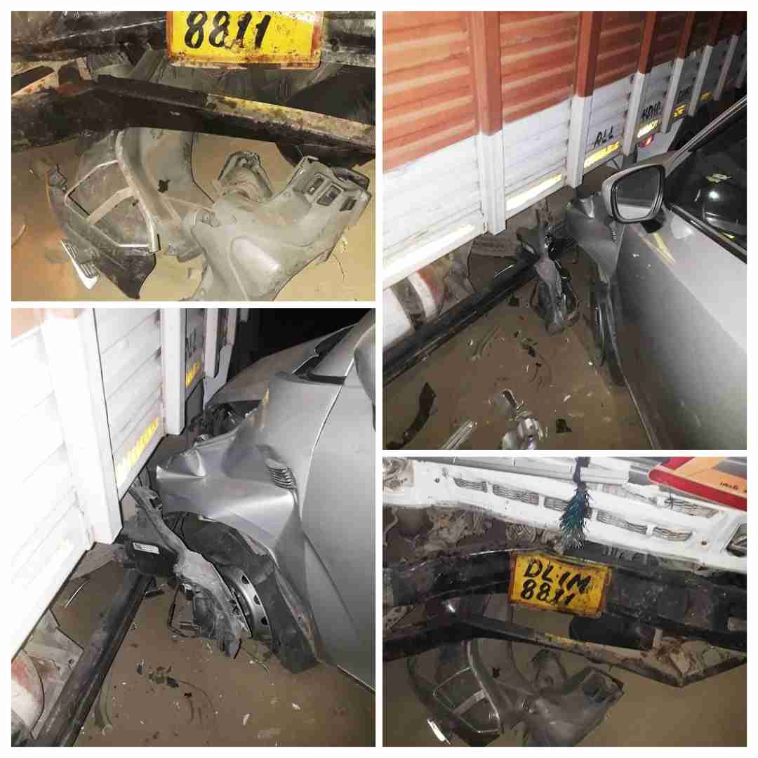हरिद्वार। रानीपुर झाल, शराब के ठेके के पास खड़ी मारुति इग्निस व स्कूटी को हरिद्वार से रुड़की जा रहे डीसीएम ने जोरदार टक्कर मार दी जिससे मारुति इग्निस के परखच्चे उड़ गए और स्कूटी डीसीएम व मारुति इग्निस के बीच फंस गई। गनीमत यह रही कि भीषण हुई इस टक्कर में कोई जनहानि नहीं हुई है। प्राप्त जानकारी के अनुसार रानीपुर झाल, शराब के ठेके के पास एक मारुति इग्निस व स्कूटी खड़ी थी तभी हरिद्वार के और से आ रहे डीसीएम ने खड़ी मारुति इग्निस कार में जोरदार टक्कर मार दी जिससे खड़ी गाड़ी के परखच्चे उड़ गई वहीं खड़ी स्कूटी भी दोनों के बीच बुरी तरह से फंस गई। गनीमत रही कि उस समय कार व स्कूटी पर कोई भी व्यक्ति मौजूद नहीं था जिस कारण भीषण टक्कर में कोई जनहानि की सूचना नहीं है। मौके पर पुलिस पहुंच गई है। ख़बर लिखे जाने तक पुलिस जांच कर रही है।