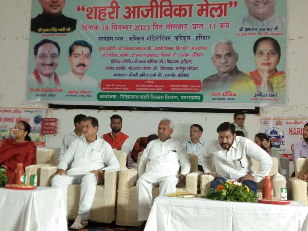 हरिद्वार। स्थानीय ऋषिकुल ऑडिटोरियम में शहरी विकास विभाग द्वारा आयोजित “शहरी आजीविका मेला” कार्यक्रम में उस समय अजीबोगरीब स्थिति पैदा हो गई जब कार्यक्रम में आए सभी भाजपा पार्षदों को उचित सम्मान न मिलने के कारण सभी भाजपा पार्षद कार्यक्रम को बीच में ही छोड़कर बाहर आ गए जबकि प्रदेश के शहरी विकास मंत्री श्री प्रेम चंद अग्रवाल और रानीपुर विधायक आदेश चौहान मंच पर मौजूद थे।