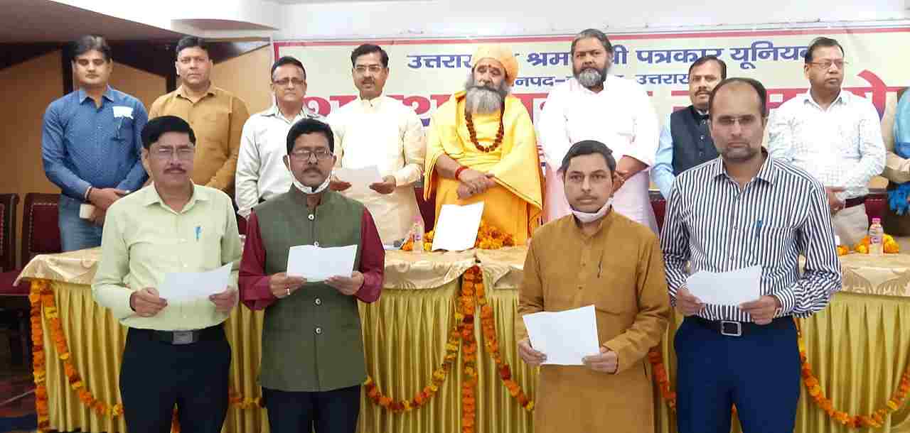 हरिद्वार। उत्तराखंड श्रमजीवी पत्रकार यूनियन जनपद हरिद्वार के नवनिर्वाचित पदाधिकारियों का शपथ ग्रहण समारोह आज बुधवार को संपन्न हुआ हरिद्वार दिल्ली हाईवे राजमार्ग स्थित होटल पार्क ग्रैंड में आयोजित शपथ ग्रहण समारोह कार्यक्रम की अध्यक्षता उदासीन बड़ा अखाड़े के श्री महंत महेश्वर दास ने की कार्यक्रम में मुख्य अतिथि के रुप में रानीपुर विधायक आदेश चौहान विशिष्ट अतिथि के रूप में उदासीन बड़ा अखाड़े के कोठारी महंत दामोदर दास महाराज भाजपा सांसद प्रतिनिधि ओमप्रकाश जमदग्नि सिडकुल एसोसिएशन के अध्यक्ष हरेंद्र गर्ग वरिष्ठ चिकित्सक डॉ रवि कांत शर्मा गणमान्य लोग मंच पर उपस्थित रहे। इस अवसर पर नई कार्यकारिणी के रूप में अध्यक्ष संजय आर्य महासचिव अमित कुमार गुप्ता कोषाध्यक्ष मनोज सो ही संगठन महामंत्री राजकुमार सहित चार उपाध्यक्ष पांच सचिव विधि सलाहकार ऑडिटर 10 कार्यकारिणी सदस्यों सभी को उदासीन बड़ा अखाड़े के महाराज एवं मुख्य अतिथि रानीपुर विधायक आदेश चौहान द्वारा शपथ दिलवाई गई। इस मौके पर यूनियन के पूर्व अध्यक्ष महासचिव एवं कोषाध्यक्ष को आमंत्रित सदस्य बनाया गया है। इसके साथ ही संरक्षक के रूप में डॉ रजनी कांत शुक्ला, सरदार रघुवीर सिंह, गोपाल रावत, वेद प्रकाश चौहान, अविक्षित रमन, डॉ रमेश खन्ना, संजय रावल को बनाया गया है। कार्यक्रम में पत्रकार संगठन एन यू जे आई के अमित शर्मा जयपाल सिंह एन यू जे के बालकिशन शास्त्री प्रेस क्लब हरिद्वार के अध्यक्ष दीपक नौटियाल महासचिव धर्मेंद्र चौधरी सहित कई पत्रकार एवं गणमान्य लोग उपस्थित रहे।
