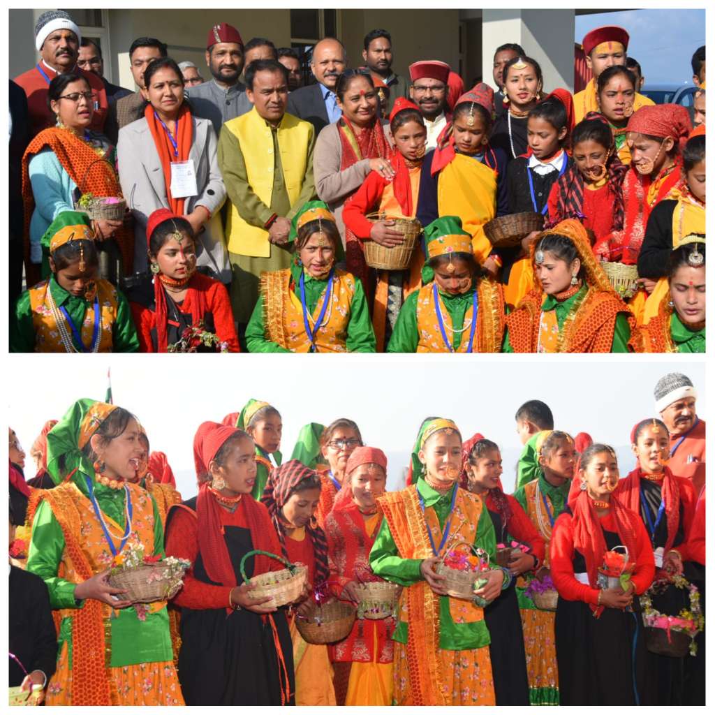 चमोली। चौत्र मास की संक्रांति को आयोजित होने वाले उत्तराखण्ड के लोक पर्व फूलदेई के अवसर पर भराड़ीसैंण स्थित विधानसभा भवन में बड़ी संख्या में क्षेत्र के बच्चों ने पारम्परिक मांगल गीतों के साथ रंग-बिरंगे प्राकृतिक पुष्पों की वर्षा की। बच्चों के साथ विधानसभा अध्यक्ष श्रीमती ऋतु खण्डूड़ी, कैबिनेट मंत्री श्री सतपाल महाराज, डॉ. धनसिंह रावत, श्री सौरभ बहुगुणा, डॉ. प्रेम चन्द अग्रवाल, विधायक अनिल नौटियाल आदि ने बच्चों से भेंट कर अपनी लोक संस्कृति एवं लोक परम्पराओं से जुड़ने के लिए उनका उत्साह वर्धन किया।