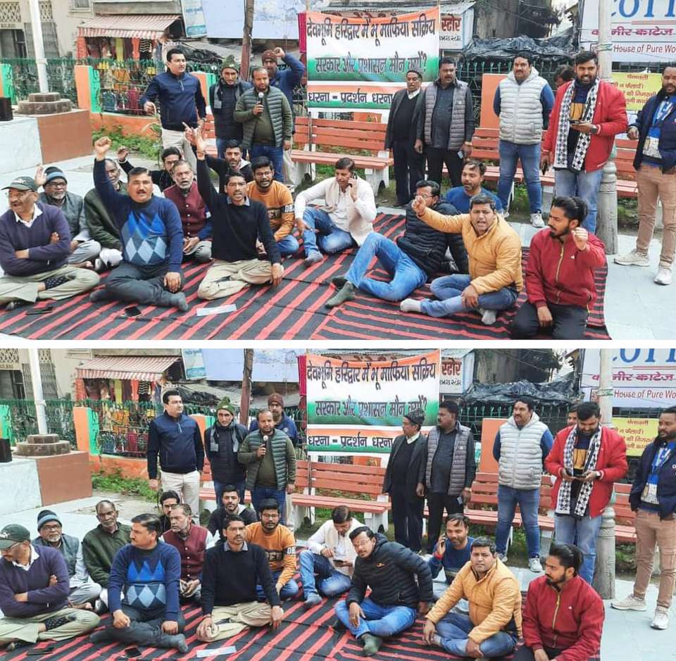 हरिद्वार। नगर कोतवाली के सामने स्थित शहीद पार्क में आज कांग्रेस कार्यकर्ताओं व पार्षदों ने भूमाफियाओं के खिलाफ धरना प्रदर्शन किया। धरने को संबोधित करते हुए प्रदेश कांग्रेस कमेटी के सदस्य मुरली मनोहर ने आरोप लगाते हुए कहा कि चाहे जमीन से जुड़े मामले हो, पेपर लीक का मामला हो या नशे से जुड़ा मामला हो भाजपा नेताओं की संलिप्तता सामने आ रही है। पूर्व पार्षद अमन गर्ग ने कहा कि भू माफियाओं को भाजपा नेता संरक्षण दे रहे हैं।