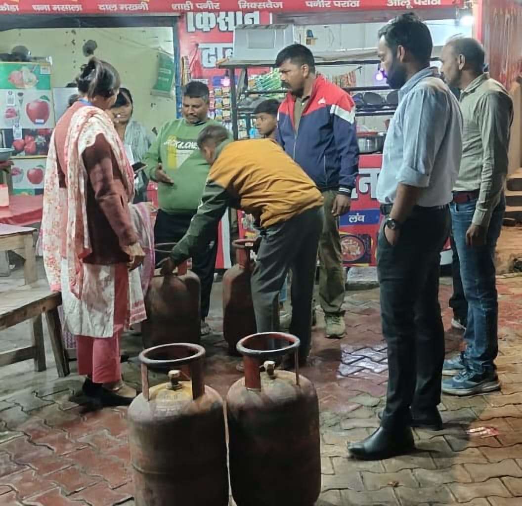 हरिद्वार। दीपावली पर्व के दृष्टिगत उप जिला अधिकारी हरिद्वार के नेतृत्व में आपूर्ति विभाग की टीम द्वारा विकासखंड बहादराबाद के अंतर्गत विभिन्न व्यावसायिक प्रतिष्ठानों एवं होटल ढाबों में गैस की कालाबाजारी एवं घरेलू गैस के दुरुपयोग को रोकने के उद्देश्य से 22 व्यावसायिक प्रतिष्ठानों पर आकस्मिक छापामारी की गई जिसमें 19 घरेलू गैस सिलेंडर जब्त किए गए। उप जिला अधिकारी हरिद्वार द्वारा क्षेत्र अंतर्गत समस्त व्यावसायिक प्रतिष्ठानों को अपने व्यावसायिक प्रतिष्ठानों पर कमर्शियल सिलेंडर उपयोग करने के निर्देश भी दिए गए। टीम में श्री अजय वीर सिंह उप जिला अधिकारी हरिद्वार श्रीमती पूनम सैनी क्षेत्रीय खाद्य अधिकारी बहादराबाद एवं श्रीमती ममता ग्वाडी पूर्ति निरीक्षक बहादराबाद उपस्थित रहे।