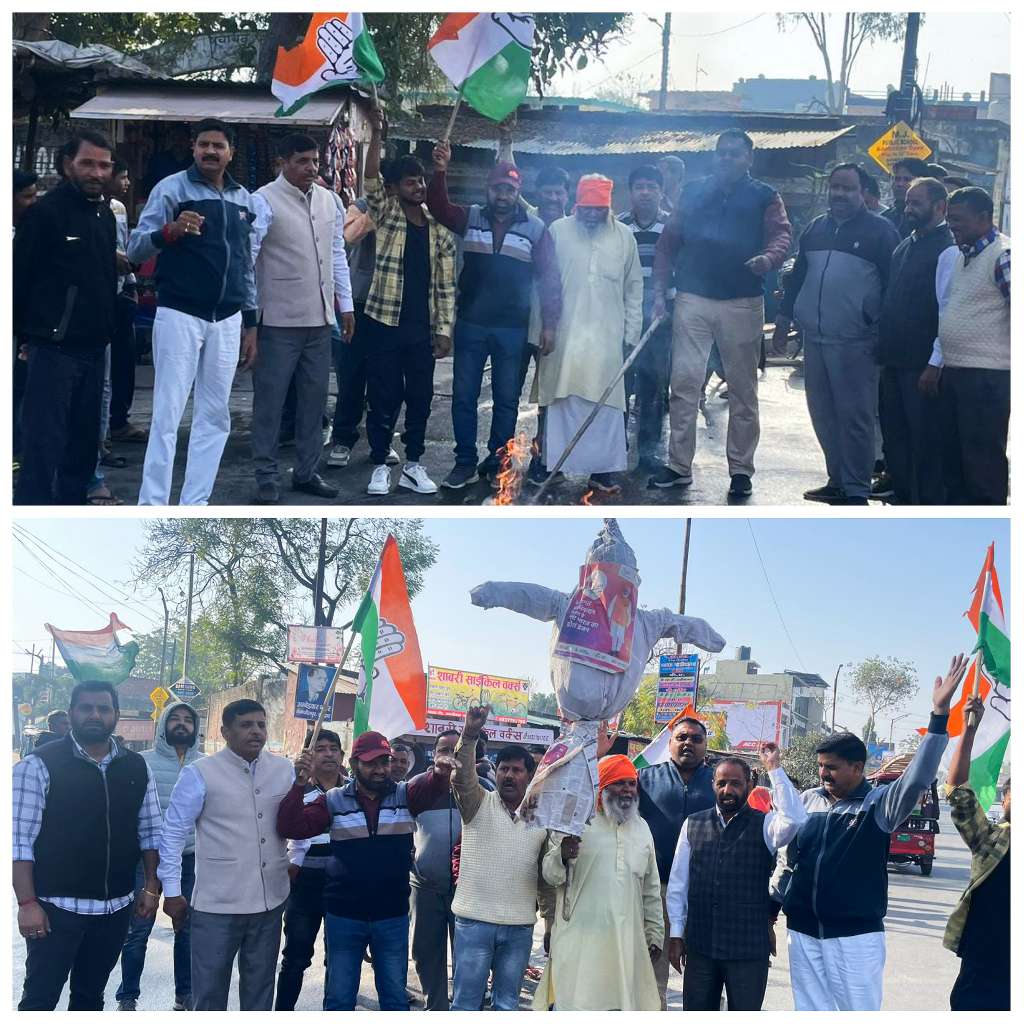 हरिद्वार। ब्लॉक कांग्रेस कनखल के अंतर्गत पुराना बस स्टेंड जगजीतपुर पर पार्षद उदयवीर चौहान व पूर्व प्रधान दिनेश वालिया के संयुक्त संयोजन मे देहरादून मे शान्तिपूर्ण आन्दोलन कर रहे युवाओं पर पुलिसिया लाठीचार्ज के विरोध मे भाजपा सरकार का पुतला दहन किया गया।
