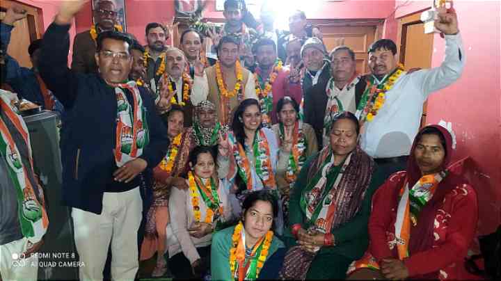 हरिद्वार। 14 फरवरी 22 को सकुशल सम्पन्न हुए मतदान के फलस्वरूप देर रात मेयर प्रतिनिधि श्रीमती पार्वती नेगी के आवास, आर्य नगर में वरिष्ठ कांग्रेस नेता और प्रेस क्लब के पूर्व अध्यक्ष मनोज सैनी के संयोजन में आर्य नगर व शारदा नगर के कांग्रेस के बूथों व बस्तों पर जिम्मेदारी, कर्तव्यनिष्ठा, ईमानदारी से काम करने वाले कांग्रेस कार्यकर्ताओं का कांग्रेस प्रत्याशी श्री सतपाल ब्रह्मचारी के अनुज भ्राता डॉ0 सुशील शर्मा द्वारा एक कार्यक्रम में फूलमालाओं व कांग्रेस पार्टी के पटके पहनाकर स्वागत किया।