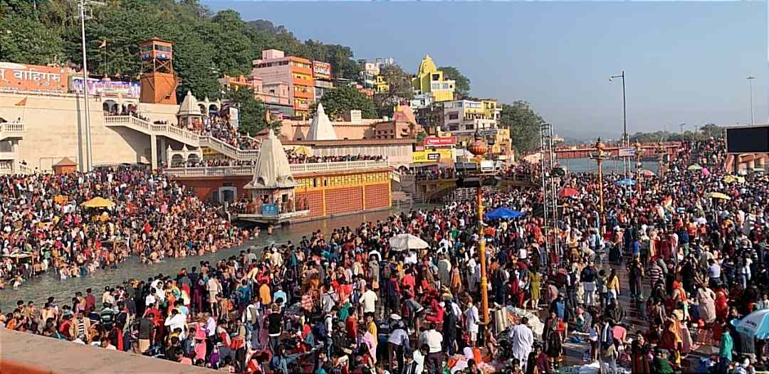 हरिद्वार। कोरोना काल के बाद वर्ष के अंतिम दिनों में पड़ रहे कार्तिक पूर्णिमा के अवसर धर्मनगरी हरिद्वार में आज गंगा स्नान के लिए सुबह से ही श्रद्धालुओं की भारी भीड़ उमड़ रही है। सुबह से ही हरकी पैड़ी पर श्रद्धालुओं की भारी भीड़ स्नान के लिए जुटनी शुरू हो गई थी। लाखों की संख्या में आए श्रद्धालु हरकी पैड़ी पर गंगा में आस्था की डुबकी लगाकर पुण्य की कामना कर रहे है। श्रद्धालुओं का मानना है कि आज के दिन गंगा में स्नान करने से सुख समृद्धि आती है और पापों से मुक्ति मिलती है। स्नान के मद्देनजर पुलिस-प्रशासन की ओर से सुरक्षा के कड़े इंतजाम किए गए। सुरक्षा के लिहाज से समस्त मेला क्षेत्र को 9 जोन और 32 सेक्टर में बांटा गया है। करीब डेढ़ हजार का पुलिस बल मेले में लोगों की सुविधा और सुरक्षा के लिए लगाया गया है।