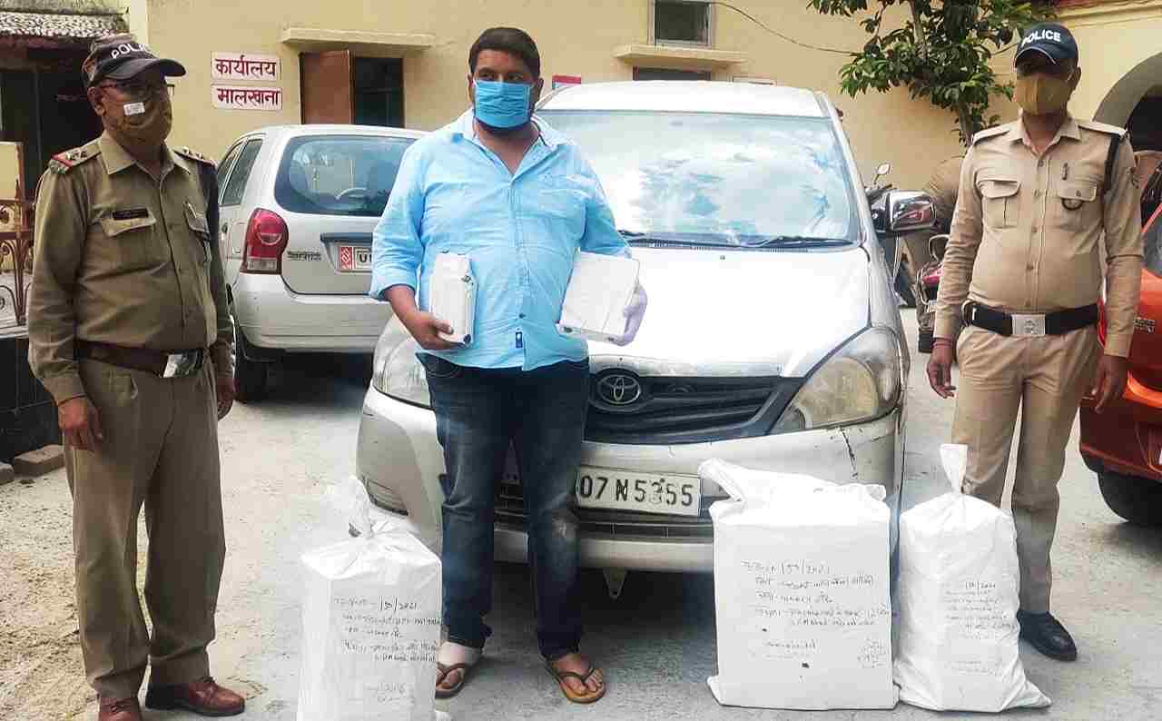 हरिद्वार। वरिष्ठ पुलिस अधीक्षक, हरिद्वार के आदेश पर अवैध रूप से शराब की तस्करी करने वाले अपराधियों की धरपकड़ हेतु चलाए जा रहे अभियान के तहत थाना कनखल ने आनंदमयी पुलिया कनखल से चेकिंग के दौरान 5 पेटी अंग्रेजी शराब के साथ एक व्यक्ति को गिरफ्तार किया है। प्राप्त जानकारी के अनुसार थाना कनखल की टीम द्वारा चेकिंग के दौरान आनंदमयी पुलिया पर चेकिंग के दौरान एक इनोवा कार जिसका नंबर यूके 07-5355 है जिसे करण भाटिया पुत्र सुरेंद्र भाटिया निवासी मकान नंबर 1424 एचसीबी सेक्टर-14 थाना सेक्टर 15 जिला सोनीपत, हरियाणा हाल पता फ्लैट नंबर जी- 2 ऋषभ अपार्टमेंट, पुरुषोत्तम विहार थाना कनखल हरिद्वार चला रहा था वह गाड़ी से तस्करी के लिये अवैध रूप से अंग्रेजी शराब लाते हुए पकड़ लिया। पकड़ी गई अवैध शराब में 2 पेटी रॉयल स्टैग व तीन पेटी 8 पीएम थी। पुलिस ने अभियुक्त के खिलाफ मुकदमा दर्ज कर लिया है। पकड़ने वाली टीम में मुख्य रूप से उपनिरीक्षक राजेंद्र सिंह रावत, उपनिरीक्षक शम्भू सिंह सजवाण, कॉन्स्टेबल मुकेश नेगी, कॉन्स्टेबल रणजीत सिंह शामिल थे।