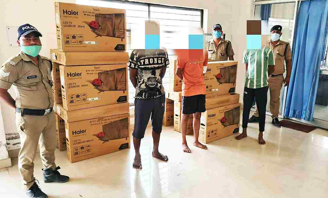 बहादराबाद। बहादराबाद क्षेत्र अंतर्गत पतंजलि इंडस्ट्रियल एरिया में स्थित सन होम अप्लायंसेज प्राइवेट लिमिटेड फैक्ट्री के मैनेजर राजवीर सिंह द्वारा थाना बहादराबाद में 14 मई को सूचना दी गई कि रात्रि में कुछ अज्ञात चोरों द्वारा उनकी फैक्ट्री की दीवार तोड़ कर फैक्ट्री से हायर कंपनी की 32 इंच वाली 25 एलईडी टीवी चोरी कर ली है जिसकी सूचना पर बहादराबाद थाने में मुकदमा अपराध संख्या 195/21धारा 380/457 आईपीसी पंजीकृत किया गया। तत्पश्चात घटना को देखते हुए बहादराबाद पुलिस द्वारा पतारसी, सुरागरसी व आसपास से जानकारी जुटाकर अथक प्रयास करते हुए 16 मई की रात्रि को संदिग्ध विशाल उर्फ लिली पुत्र अनिल, उदित पुत्र मुन्नालाल, हिमांशु पुत्र विजेंदर निवासी बहादरपुर सैनी को गिरफ्तार किया गया जिनके कब्जे व निशानदेही से गांव में ही स्थित लीची के बाग मे लगे ट्यूबेल से कुल 15 एलईडी टीवी हायर कंपनी की बरामद की गई। पकड़े गए अभियुक्तों को गिरफ्तार कर न्यायालय पेश किया जाएगा। पूछताछ में अभियुक्तों द्वारा बताया गया कि उन्होंने अपने अन्य साथियों के साथ मिलकर यह चोरी की है अन्य साथियों के बारे में जानकारी प्राप्त कर तलाश की जा रही है। घटना का अनावरण करने और आरोपियों को गिरफ्तार करने में संजीव थपलियाल थानाध्यक्ष बहादराबाद, एसआई लक्ष्मण जोशी, प्रवीण बिष्ट, कांस्टेबल हरजिंदर वीरेंद्र शर्मा, बारू दत्त ,सुशील कुमार, सुनील कुमार की मुख्य भूमिका थी।