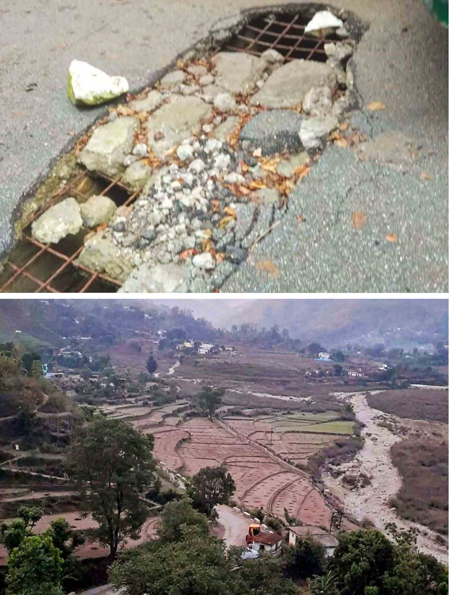 अब आप देख रहे है कि बड़ी गाडियाँ कितनी मुश्किल से आर पार हो रही है।होंगी भी क्यों नहीं, लोगों को अपने घर तो जाना ही है। ये भी भ्रष्टाचार व घोटाले का ही एक भाग नजर आ रहा है। उत्तराखंड में हर गढ्ढे के नीचे भ्रष्टाचार व घोटाला दबा है। जितना खोदोगे उतना ज्यादा निकलेगा सड़क पर लगा टूटे भाग का सरिया नंगा दिखाई दे रहा है।