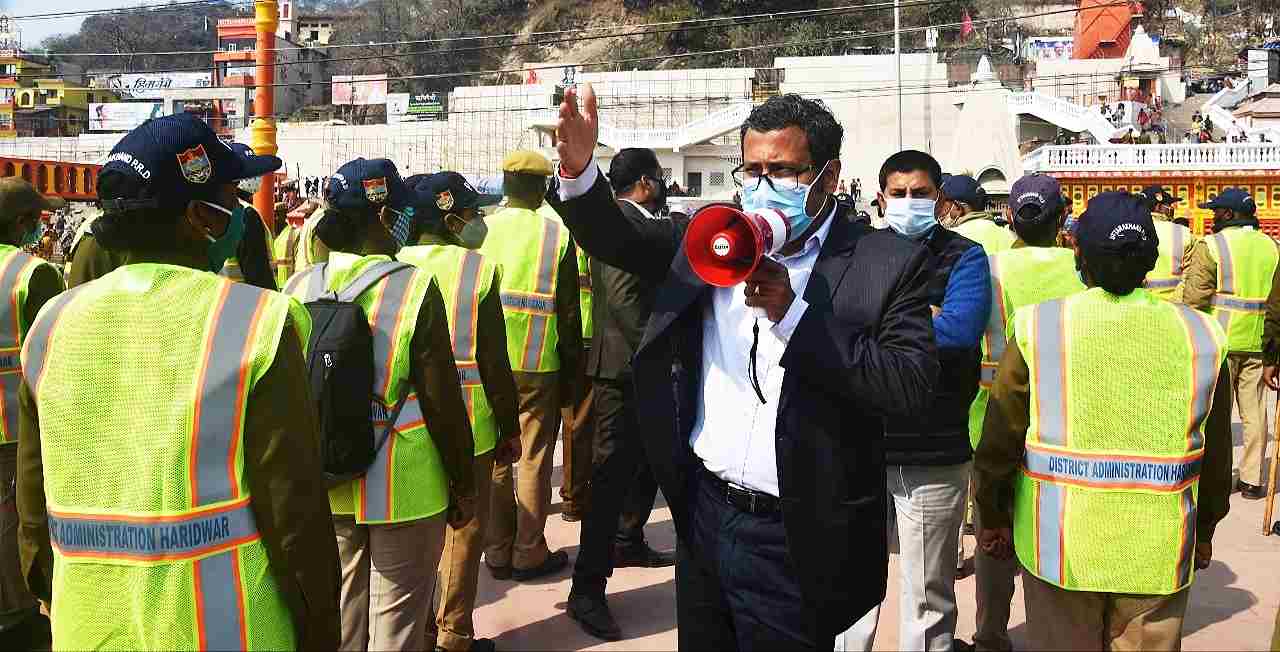 हरिद्वार। जिलाधिकारी हरिद्वार श्री सी रविशंकर ने आज गंगा घाटों पर पीआरडी, होमगार्ड व वाॅलेंटियर की तैनाती किस प्रकार से रहेगी इसको लेकर मालवीय घाट पर पीआरडी जवानों को ब्रीफ किया। उन्होंने पीआरडी जवानों को पंक्तिबद्ध कराने के बाद सम्बोधित करते हुए कहा कि कुम्भ आयोजन पर पीआरडी जवानों को स्वंय कोरोना सुरक्षा उपायों को अपना कर आने वाले श्रद्धालुओं से भी इसका पालन कराना है। सभी पीआरडी जवानों का कोरोना टीकाकरण करने के निर्देश डीओ पीआरडी को दिये। स्नान दिनों पर किस प्रकार जवानों के द्वारा श्रद्धालुओं को गाइड करना है, क्या व्यवहार और आचरण अपनाना है किस प्रकार से मुस्तैद रहते हुए अपने दायित्वों का निर्वहन करना है समझाया।