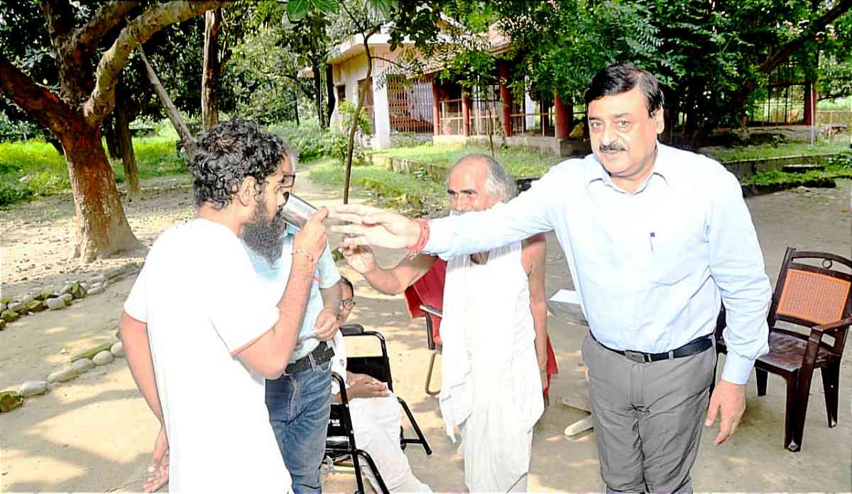 हरिद्वार। जिलाधिकारी हरिद्वार श्री विनय शंकर पाण्डेय ने आज जगजीतपुर स्थित मातृ सदन आश्रम पहुंचकर स्वामी शिवानन्द एवं ब्रह्मचारी आत्मबोधानंद जी से सौहार्द्रपूर्ण माहौल में मुलाकात की। इस मौके पर जिलाधिकारी की स्वामी शिवानन्द एवं ब्रह्मचारी आत्मबोधानंद जी से विभिन्न विषयों पर विस्तृत चर्चा हुई। उन्होंने ब्रह्मचारी आत्मबोधानन्द जी के स्वास्थ्य के बारे में भी जानकारी ली। जिलाधिकारी ने ब्रह्मचारी आत्मबोधानन्द जी से अपना अनशन समाप्त करने का अनुरोध किया, जिसको स्वीकार करने पर, जिलाधिकारी व आश्रम के संस्थापक स्वामी शिवानन्द ने ब्रह्मचारी आत्मबोधानन्द जी को जूस पिलाकर उनका अनशन समाप्त कराया।
