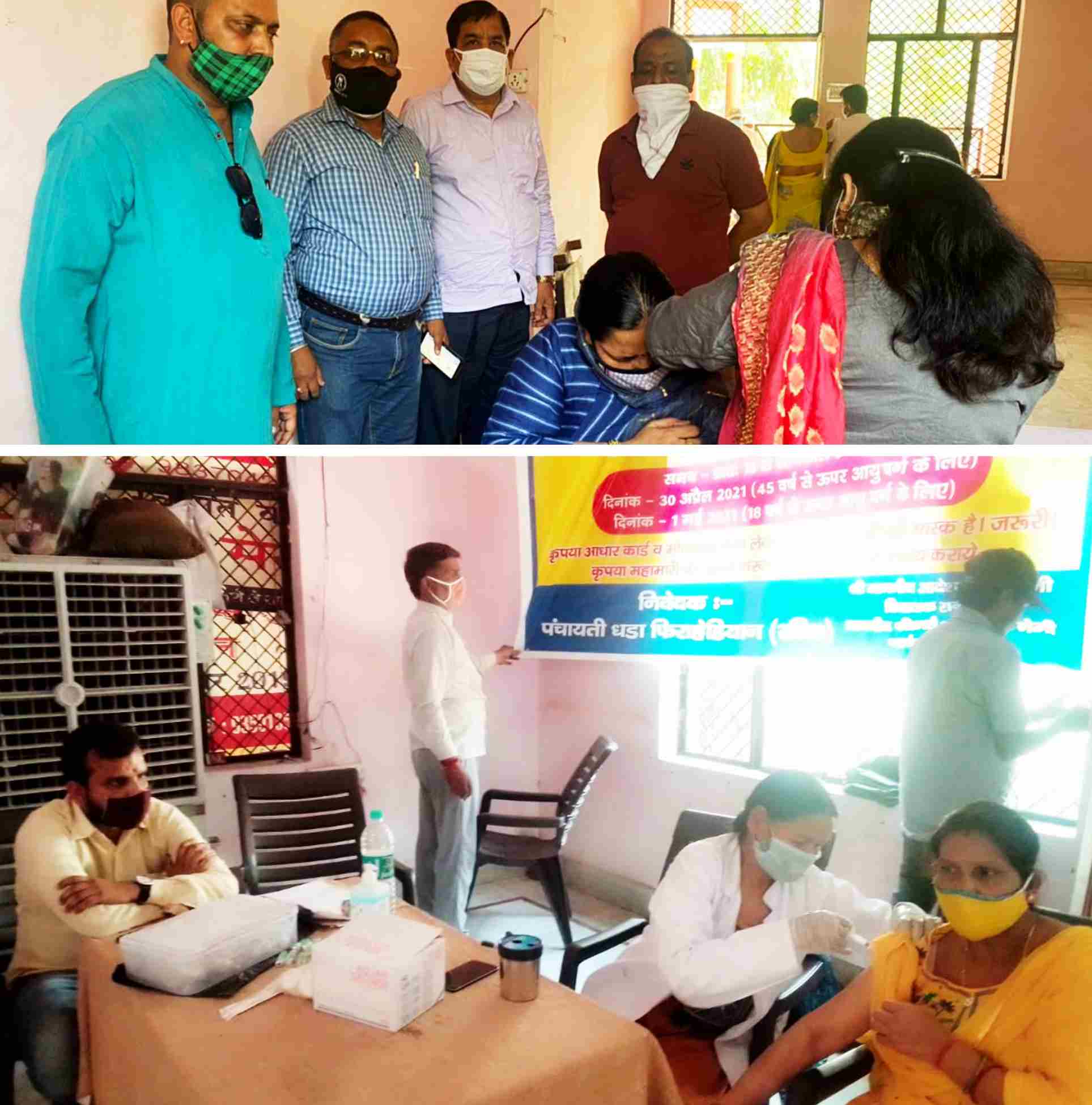 हरिद्वार। देश एवं प्रदेश में तेजी के साथ बढ़ रहे कोरोना संक्रमण मामलों को देखते हुए ज्वालापुर के पांडे वाला स्थित श्री रघुनाथ मंदिर में श्री धड़ा पंचायत फिराहेडियान प्रबंधक कमेटी एवं रानीपुर विधायक आदेश चौहान व पार्षद कलावती नेगी व उनके प्रतिनिधि आनन्द सिंह नेगी के सहयोग से लगाए गए कोविड-19 टीकाकरण (वैक्सीनेशन कैम्प) में आज मंगलवार को पांचवें दिन 105 लोगों को कोरोना वैक्सीन लगाई गई। वहीं क्षेत्रीय लोगों ने कैंप में कोरोना के प्रति जागरूकता दिखाते हुए बढ़ चढ़कर भाग लिया। जिनमें प्रमुख रूप से महिलाएं पुरुष एवं बुजुर्ग लोग शामिल रहे। कैंप में अब तक लगभग 370 लोग अपना वैक्सीनेशन टीकाकरण करवा चुके हैं। इस मौके पर केंद्र सरकार के स्लोगन के साथ दवाई भी कड़ाई भी के संदेश के साथ सभी ने कोरोना नियमों का पालन करते हुए मास्क पहनकर अपना टीकाकरण कराया। इस मौके पर कैंप में आने वाले सभी लोगों को कमेटी की ओर से मास्क भी वितरित किए गए। टीकाकरण का कार्य अभी आगे भी निरंतर जारी रहेगा। इस मौके पर कैंप को सहयोग करने वालों में पंडित उमा शंकर वशिष्ठ, सचिन कौशिक, सौरभ सिखौला, अनिल कौशिक आदि लोग शामिल रहे।
