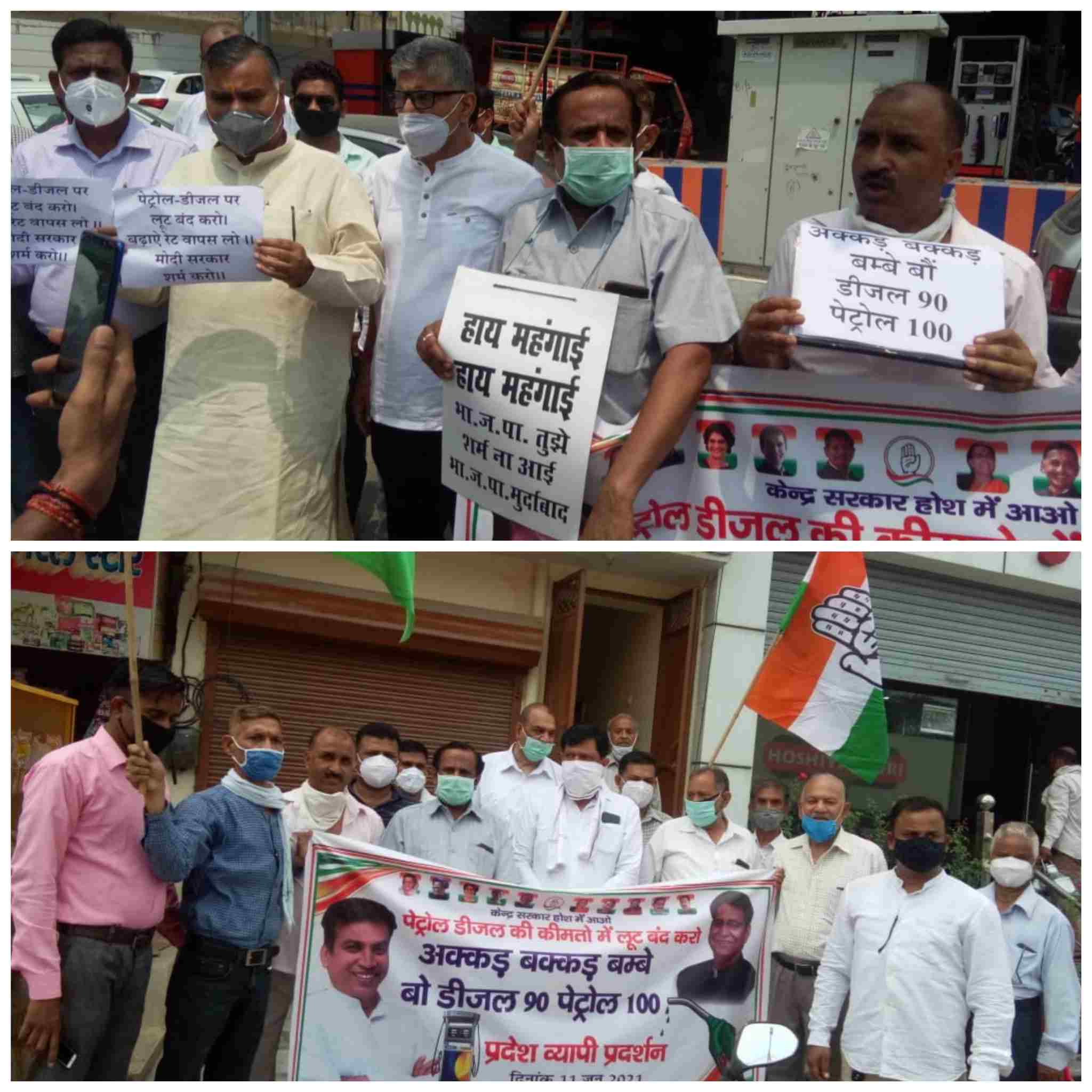 केंद्र की गूंगी बहरी सरकार लगातार गरीबों पर अत्याचार कर रही है दो वक्त की रोटी कठिन हो गया है परंतु जो महंगाई केंद्र दे रहा है वह दोहरी मार है। प्रदेश उपाध्यक्ष रामयस सिंह व पूर्व पालिका अध्यक्ष सतपाल ब्रह्मचारी, प्रदेश सचिव प्रदीप चौधरी ने कहा कि केंद्र सरकार के फैसले लेने में पूंजी पतियों अंबानी अडानी का सीधा-सीधा रोल है, वही देश में महंगाई बढ़ाकर अत्याचार कर रहे हैं तथा हमारे देश के प्रधानमंत्री मौन धारण किए हुए हैं। महिला जिला अध्यक्ष विमला पांडे तथा प्रदेश महासचिव सतीश कुमार व धर्मपाल ठेकेदार ने कहा कि भाजपा सरकार विगत 7 वर्षों से अत्याचार कर रही है लोगों के रोजगार समाप्त हो गए हैं रहा सहा कोरोना ने समाप्त कर दिया है। बच्चे भूखे मर रहे हैं ऐसे में लगातार पेट्रोल डीजल के रेट बढ़ाकर आग में घी डालने का कार्य केंद्र सरकार कर रही है। कार्यक्रम में चौ बलजीत सिंह, महेश प्रताप राणा, राजवीर चौहान, नईम कुरैशी, बी.एस.तेजियान, सुभाष कपिल, अशोक शर्मा, यशवंत सैनी, रवि कश्यप, राजीव चौधरी, शैलेंद्र सिंह एडवोकेट, विभास मिश्रा, अनिल भास्कर, हाजी रफी खान, सीपी सिंह, पार्षद उदयवीर सिंह, पार्षद अमन गर्ग, पार्षद राजीव भार्गव,पारषद कैलाश भट्ट, कैलाश प्रधान, दिनेश पुंडीर,नवेज अंसारी, आकाश बिरला, शिव कुमार जोशी, जितेन्दर सिंह, हरजीत सिंह, पार्षद सोहेल कुरेशी, सत्येंद्र वर्मा, बलराम राठौड़, पुरषोत्तम शर्मा, डा.मेहरबान खान, नीतू बिष्ट, मिथिलेश गिल, नीलम शर्मा, राजेंद्र श्रीवास्तव, मधुकांत गिरी, हरद्वारी लाल, सुनील कुमार, अनीस कुरैशी, विशाल राठौड़,जॉनसन जैम्स सतेंद्र वशिष्ठ, सुमित भाटिया, वसीम सलमानी, जगदीप असवाल, मनोज जाटव, हरद्वारी लाल, राजेंद्र भंवर, त्रिपाल शर्मा, हरिशंकर प्रसाद,अनस कुरैशी, आर बी एल वर्मा, मनीराम बागड़ी, लक्ष्मी प्रसाद, नरेश सेमवाल, पं.संगम शर्मा आदि शामिल रहे।