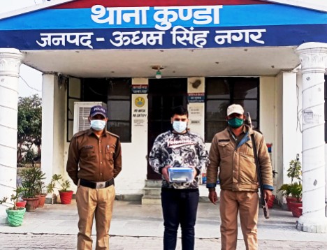 उधमसिंह नगर। थाना कुंडा में 17 दिसम्बर को अश्वनी कांत पुत्र किशन लाल निवासी भरतपुर थाना कुंडा जनपद उधमसिंह नगर व नितेश कुमार पुत्र राजाराम निवासी ग्राम कुंडा जनपद उधम सिंह नगर की लिखित तहरीर पर राजीव पांडे पुत्र कैलाशपति पांडे निवासी विंग नंबर 3 मकान नंबर 192 प्रेम नगर देहरादून व अभियुक्त हरि सिंह पुत्र जय किशन सिंह निवासी ग्राम भरतपुर थाना कुंडा जनपद अध्यक्ष उधम सिंह नगर द्वारा नौकरी का झांसा देकर व फर्जी नियुक्ति प्रमाण पत्र देकर क्रमश: 500000 रू0 व 1210000 रुपए ठगी करने, रुपए वापस मांगने पर गाली गलौज व जान से मारने की धमकी देने के संबंध में थाना कुंडा में दिनांक 17 दिसम्बर 2021 को एफआईआर नंबर 223/2021 धारा 420/467/468/504/506 भादवि व एफआईआर नंबर 224/2021 धारा 420/467/468/504/506 भा0 द0 वि0 पंजीकृत हुआ जिसकी विवेचना उप निरीक्षक अमित शर्मा द्वारा सम्पादित की गयी। विवेचनात्मक कार्यवाही के दौरान प्रतिवादी राजीव पांडे पुत्र कैलाशपति पांडे निवासी विंग नंबर 3 मकान नंबर 192 प्रेम नगर देहरादून को वास्ते पूछताछ थाने लाया गया। पूछताछ में अपराध की पुष्टि होने पर आज 24 फरवरी को समय 02.30 बजे गिरफ्तार कर माननीय न्यायालय भेजा गया। अभियुक्त को गिरफ्तार करने वाली पुलिस टीम मेंउ0नि0 अमित शर्मा, का0 जीतेन्द्र चौहान, नीरज बिष्ट शामिल थे।