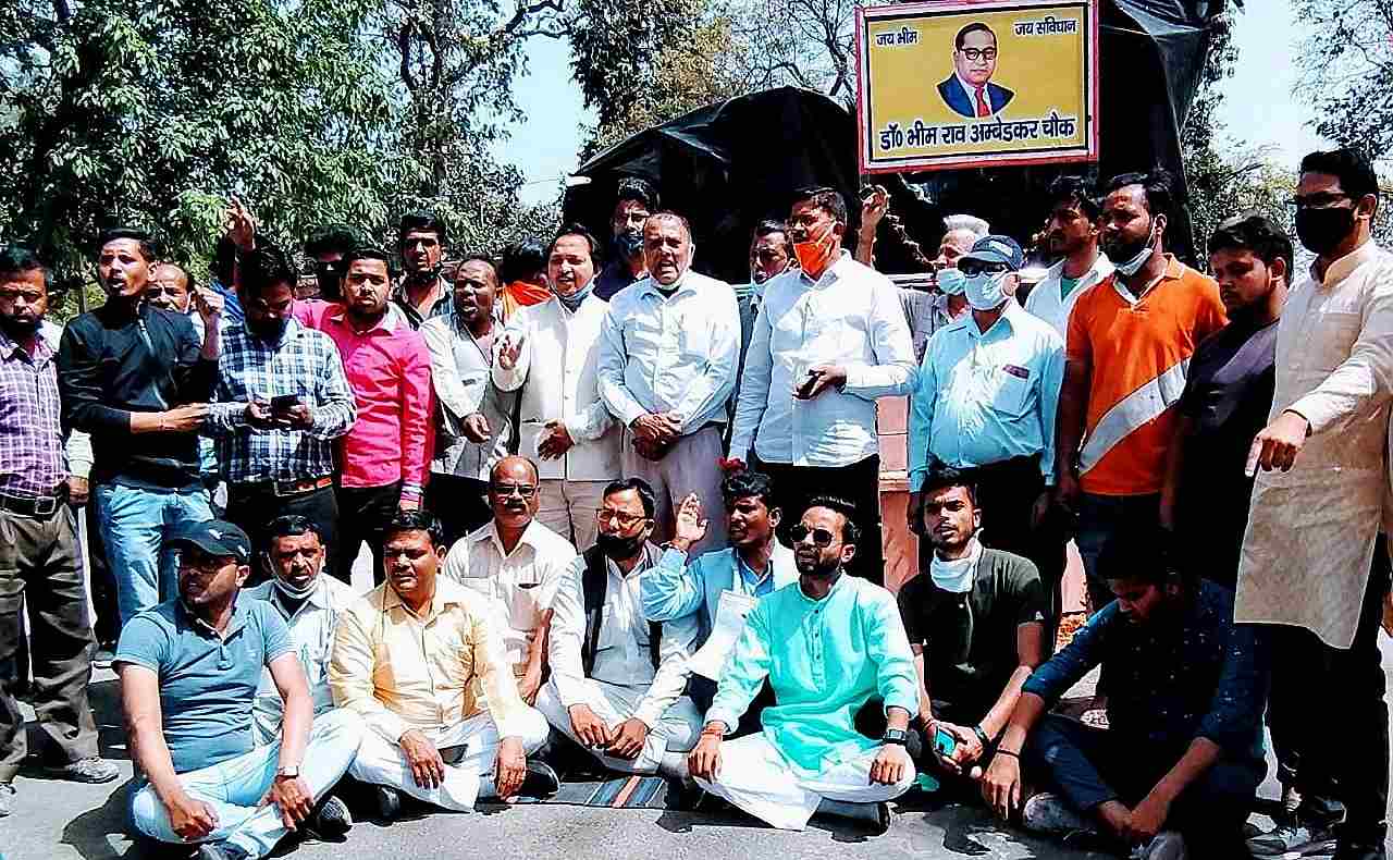 हरिद्वार। रेलवे फाटक, अंबेडकर चौक, टिबडी हरिद्वार पर जबरन प्रशासन द्वारा चील व गिद्ध की स्टेचू लगाए जाने के विरोध में आज दलित समाज द्वारा सांकेतिक विरोध प्रदर्शन किया गया। विरोध प्रदर्शन करने वालों में मनोज जाटव, अंकित, विशाल राठौर, श्याम सिंह, नरेश, सुनील कुमार, तिर्थपल, सीपी सिंह, रजत, प्रताप सिंह, राजेंद्र, रोहित नागायन, योगेश कुमार, मनोज कुमार, राकेश कुमार, नितिन तेशवर, बी पी एस तजियान, मंजीत, नारायण सिंह, अनुज सिंह, अमन वालिया, कुलदीप, दीपक दुबे, आशु, अंकित, विशाल कुमार, शेखर, प्रशांत राठौर, दौलत, सतीश कुमार, अजय मुखिया, आशु बूरा, अमित, राजेश कुमार, दिलीप कुमार, हरीश चन्द, विपुल आदि प्रमुख थे।