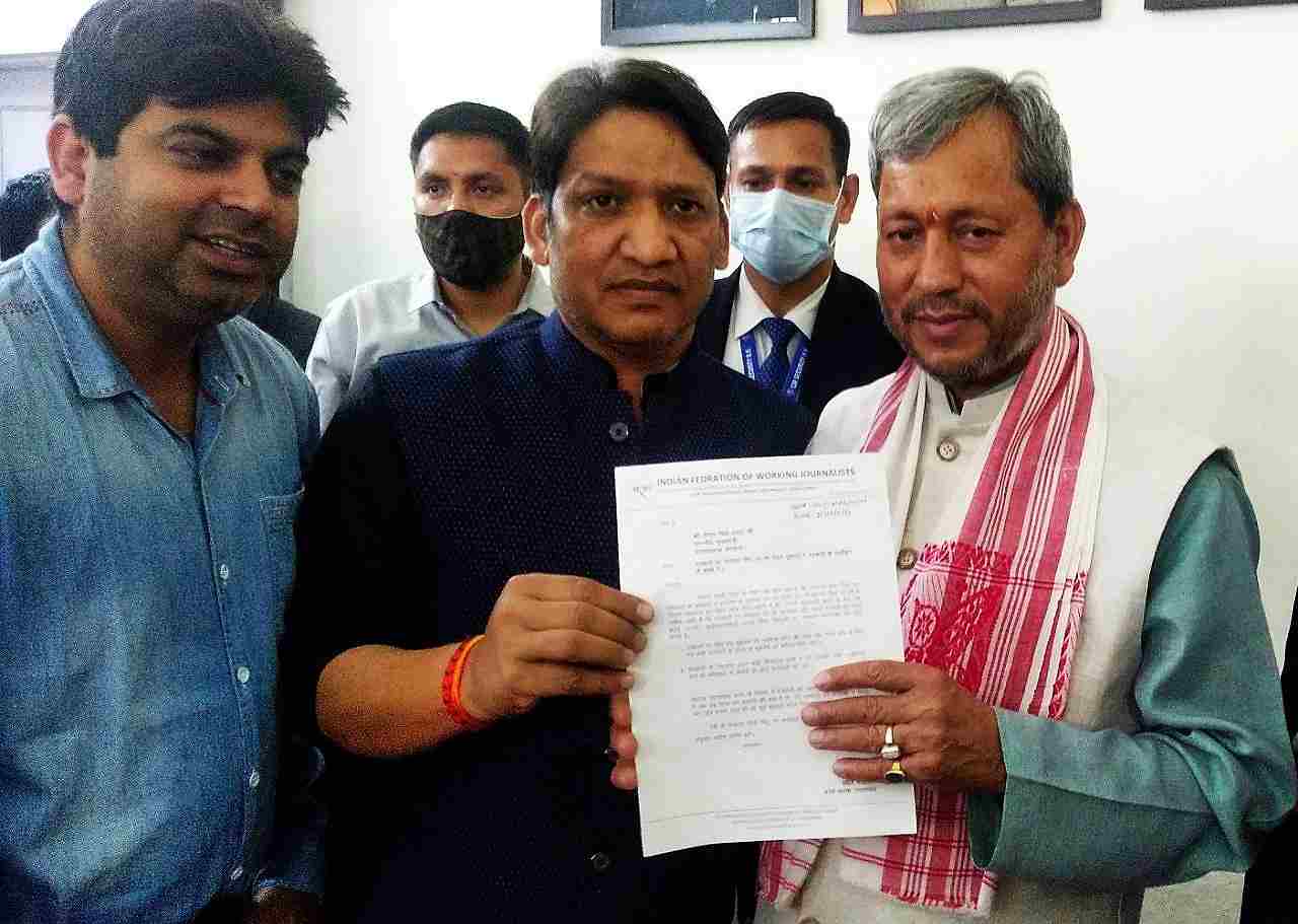 देहरादून। उत्तराखंड में पिछले दिनों लगातार पत्रकारों पर किए गए मुकदमे को लेकर के आईएफडब्ल्यूजे का एक प्रतिनिधिमंडल मुख्यमंत्री तीरथ सिंह रावत से मुलाकात किया। प्रतिनिधिमंडल की अगुवाई कर रहे हैं आईएफडब्ल्यूजे के प्रदेश अध्यक्ष संजय श्रीवास्तव ने मुख्यमंत्री तीरथ सिंह रावत को एक ज्ञापन दिया जिसमें कहा गया है कि पिछले दिनों में लगातार समाचारों को दृष्टिगत करते हुए पत्रकारों पर कई मुकदमे किए गए हैं जिसे लोकतंत्र के चौथे स्तंभ पर खतरे के रूप में देखा जा रहा है। ज्ञापन में कहा गया है कि पिछले दिनों में पत्रकारों पर जो मुकदमे किए गए हैं उनकी न्यायिक जांच कराई जाए तत्पश्चात उस पर कार्यवाही की जाए। उसके साथ ही आईएफडब्ल्यूजे ने मांग की है कि समाचारों को लेकर के पत्रकारों के ऊपर मुकदमो के द्वारा दबाव बनाया जाता है ऐसे में पत्रकारों के खिलाफ शिकायत होने पर पहले उसकी जांच आईपीएस स्तर के अधिकारी से कराई जाए उसके उपरांत ही उस शिकायत पर कार्यवाही की जाए। आईएफडब्ल्यूजे का प्रतिनिधिमंडल मुख्यमंत्री तीरथ सिंह रावत से मुलाकात कर पत्रकारों के अन्य समस्याओं से भी उन्हें अवगत कराया। मुख्यमंत्री तीरथ सिंह रावत ने पत्रकारों के ऊपर किए गए मुकदमों का संज्ञान लेते हुए जांच की बात कही और उन्होंने आश्वस्त किया है कि आने वाले समय में यह ध्यान दिया जाएगा की समाचारों के लिए पत्रकारों पर गलत ढंग से दबाव न बनाया जाये। इस दौरान मुख्यमंत्री ने आईएफडब्ल्यूजे के राष्ट्रीय अध्यक्ष के विक्रम राव से भी टेलीफोन पर वार्ता की और उन्हें भी आश्वस्त किया की देवभूमि में पत्रकारों का पूरा सम्मान किया जाएगा। प्रतिनिधि मंडल में कार्तिक, विनीत नागपाल, राजकुमार और अजय कुमार शामिल थे।