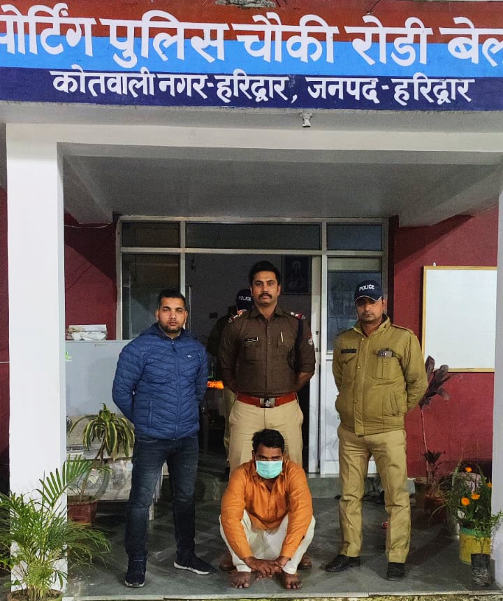 हरिद्वार। कोतवाली नगर पुलिस ने एसओजी के सहयोग से मु0अ0स0 506/2021 धारा 379, 341, 411, 420, 427, 465, 120बी आईपीसी में काफी समय से फरार चल रहे इनामी अभियुक्त नीरज उर्फ अनिरुद्ध पुत्र विजेंदर निवासी ग्राम माजरा थाना नारनौंद जिला हिसार हरियाणा उम्र 26 वर्ष को आज दिनांक 18 फरवरी को रोहतक हरियाणा से गिरफ्तार किया गया। ज्ञातव्य हो की अभियुक्त मुकदमा उपरोक्त में वांछित था तथा काफी समय से फरार चल रहा था जिस पर उचाधिकारियो द्वारा 5000 रुपए का नकद इनाम भी घोषित किया जा चुका था। अभियुक्त को पकड़ने वाली पुलिस टीम में निरीक्षक राकेंद्र कठैत, उपनिरीक्षक अंशुल अग्रवाल, का0 मुकेश चौहान, का0 नितिन(एसओजी), का0 महिपाल(एसओजी) शामिल थे।