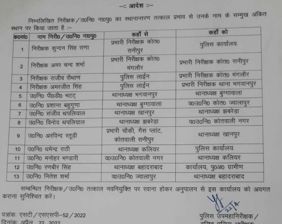 APNE LOG NEWS 3 years ago Shareहरिद्वार। पुलिस महानिरीक्षक ने जनपद हरिद्वार के 13 निरीक्षक/ उ0नि0 ना०पु० का तत्काल प्रभाव से स्थानांतरण किया है। देंखे स्थानांतरण सूची। Share Post navigation Previous कोरोना की चौथी लहर को देखते हुए जिलाधिकारी ने दिए अधिनस्थों को आवश्यक दिशा निर्देशNext कर्मचारी ही करते थे निर्माण कम्पनी का सामान चोरी, कबाड़ी को बेचते थे चोरी किया सामान, पुलिस ने धर दबोचा, पढिये पूरी खबर Leave a Reply Cancel replyYour email address will not be published. Required fields are marked *Comment * Name * Email * Website Save my name, email, and website in this browser for the next time I comment. More Stories अपराध उत्तराखंड हरिद्वार दीपावली से पूर्व पुलिस ने फर्जी मावा गिरोह का किया भंडाफोड़, पकड़ा 10 क्विंटल नकली मावा। 6 hours ago APNE LOG NEWS उत्तराखंड खास खबर हरिद्वार नगर आयुक्त ने दिए दीपावली से पूर्व सफाई व्यवस्था चाक-चौबंद करने के निर्देश। बाजारों में रात्रि में चलेंगे कचरा कलेक्शन वाहन। 1 day ago APNE LOG NEWS उत्तराखंड खास खबर हरिद्वार बैरागी कैंप पार्किंग ठेका विवाद: अवैध पार्किंग से होने वाली अवैध कमाई को लेकर भाजपा के दो पूर्व मंत्रियों की नूरा कुश्ती का खेल। 1 day ago APNE LOG NEWS