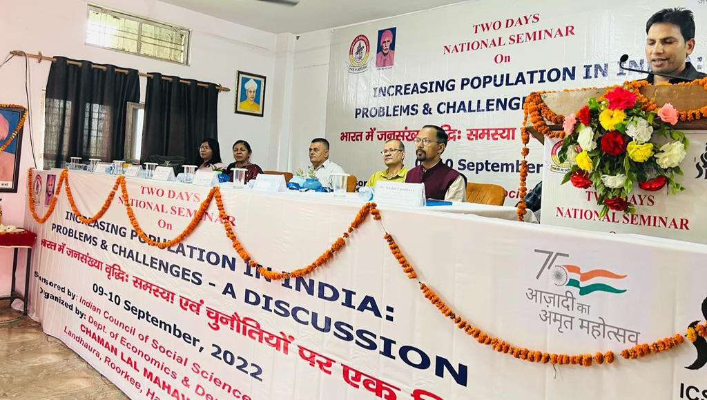 लंढौरा। चमन लाल महाविद्यालय के अर्थशास्त्र एवं राजनीति विज्ञान विभाग द्वारा संयुक्त रुप से भारत में जनसंख्या वृद्धि समस्या एवं चुनौतियां एक विमर्श विषय पर दो दिवसीय राष्ट्रीय संगोष्ठी का आयोजन किया जा रहा है। संगोष्ठी के प्रथम दिन वक्ताओं ने जनसंख्या वृद्धि के प्रभावों एवं निराकरण के विषय में विचार विमर्श किया। मुख्य वक्ता डॉ0 विजय रावत ने कहा कि जनसंख्या वृद्धि से अधिक बड़ी समस्या संसाधनों का प्रबंधन न कर पाना है। जनसंख्या वृद्धि इस बात की ओर संकेत करती है कि हम मृत्यु दर कम करने में सफल रहे हैं जो किसी भी देश के लिए एक अच्छा संकेत है। जनसंख्या नियंत्रण के लिए बहुत कड़े नियम भविष्य में वृद्ध जनसंख्या जैसी समस्याओं को जन्म देती है। इसीलिए जनसंख्या नियंत्रण के साथ हमें संसाधन प्रबंधन पर ध्यान देने की आवश्यकता है।