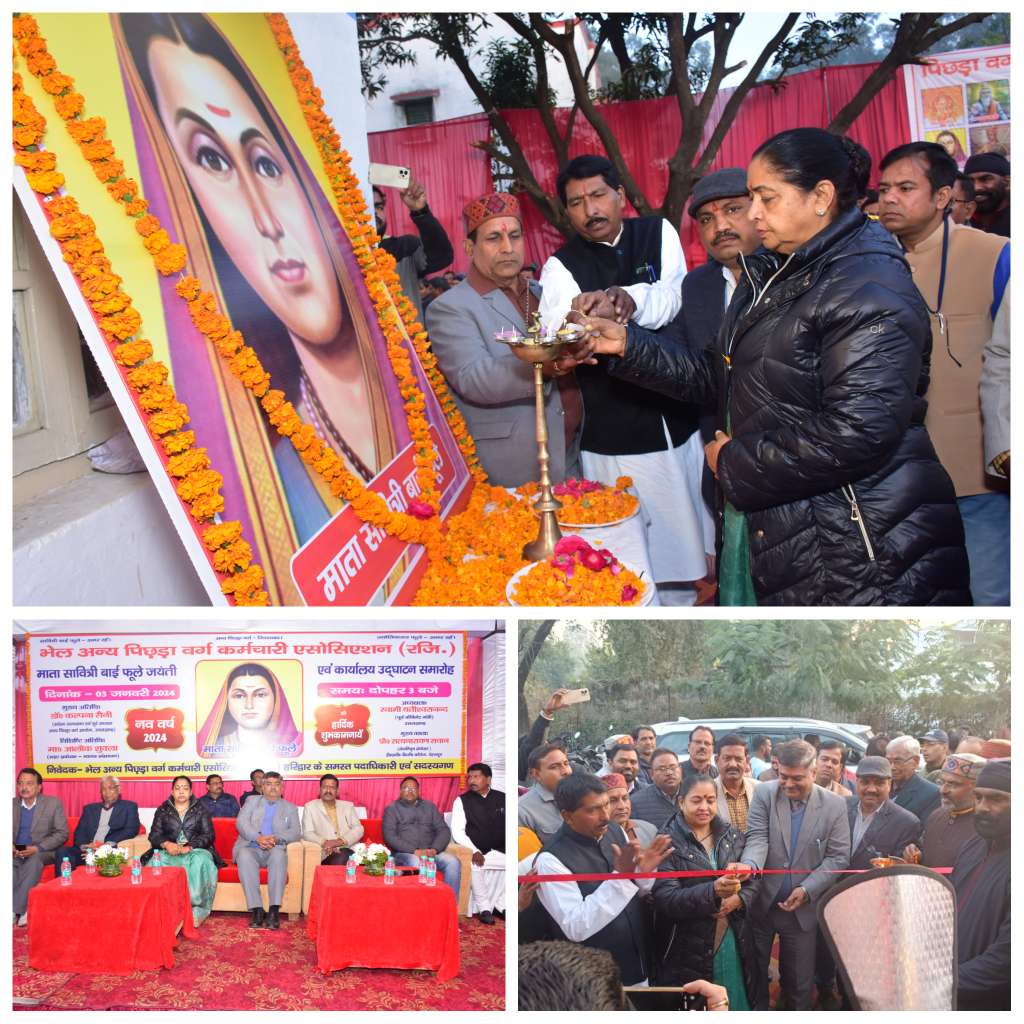 हरिद्वार। भेल (हीप एवं सी एफ एफ पी) अन्य पिछड़ावर्ग कर्मचारी एसोसिएशन के लोगों ने क्वार्टर नंबर 55/3/5B पर कार्यालय का उद्घाटन करके माता सावित्रीबाई फुले जयंती धूमधाम से मनाई। कार्यक्रम की मुख्य अतिथि डॉक्टर कल्पना सैनी जी (सांसद राज्य सभा एवं पूर्व अध्यक्षा अन्य पिछड़ावर्ग आयोग, उत्तराखंड) एवं महाप्रबंधक मानव संसाधन श्री आलोक शुक्ला जी ने कार्यालय का उद्घाटन किया। डॉक्टर कल्पना सैनी जी ने कहा कि पिछड़े वर्ग के लोगों को शिक्षित एवं संगठित होकर अपने अपने अधिकारों के प्रति सजग रहने की जरूरत है। माता सावित्रीबाई फुले के आदर्शों पर चलते हुए समाज में महिला शिक्षा एवं सशक्तिकरण पर जोर देना चाहिए।उन्होंने कहा कि मुझे खुशी हो रही है कि पिछड़ावर्ग शिक्षा एवं अपने अधिकारों के प्रति जागरूक हो रहा है। मेरी शुभकामना है कि भेल ओ.बी.सी. एसोसिएशन के लोग अपने कार्यालय पर दलित, शोषित, पिछड़ेवर्ग की भलाई के कार्यक्रम का आयोजन करते रहेंगे। समाज हित में उनके द्वारा किए गए सभी कार्यक्रमों का सदैव मेरा सहयोग मिलता रहेगा। कार्यक्रम के विशिष्ट अतिथि महाप्रबंधक मानव संसाधन भेल श्री आलोक शुक्ला जी ने कहा कि हमें माता सावित्रीबाई जी के आदर्शों से प्रेरणा लेते हुए उनकी बातों को अपने वास्तविक जीवन में चरितार्थ करने की जरूरत है, वही उनके प्रति सच्ची निष्ठा व श्रद्धांजलि होगी। मुख्य वक्ता प्रोफेसर सत्यनारायण सचान जी ने ओ.बी.सी. वर्ग की समस्याओं एवं चुनौतियों पर विस्तार से व्याख्यान दिया। भेल ट्रेड यूनियन, अनुसूचित जाति एसोसिएशन तथा विभिन्न सामाजिक संस्थाओं के प्रतिनिधियों ने अपने अपने विचार रखे। कार्यक्रम का संचालन उपाध्यक्ष घनश्याम यादव तथा अध्यक्षता ठेकेदार श्री धर्मपाल जी जी के द्वारा की गई। इस अवसर पर अध्यक्ष सियाशरण यादव, महामंत्री ललित सैनी, उपाध्यक्ष घनश्याम यादव, कोषाध्यक्ष नेत्रपाल प्रजापति, सुभाष सैनी, विमलेश, मोहम्मद ताहिर, धर्मेंद्र लोधी, सुनील धीमान, नीरज बघेल, सचिन सोनी, गुरुदत्त, चिरंजीव, विनोद पाल, राम बहादुर महतो, भानू प्रताप, कमलेश्वर पाल, केदार, धनंजय, बालाजी वर्मा, जे पी वर्मा , सरबजीत, अमरजीत जांगड़ा, जितेन्द्र धीमान, रमेश कुमार, कमलेश, कुलभूषण, मुनरिका यादव, यश पी मौर्य, धर्मपाल धीमान आदि ओ बी सी समाज के सम्मानित सदस्य उपस्थित रहे।
