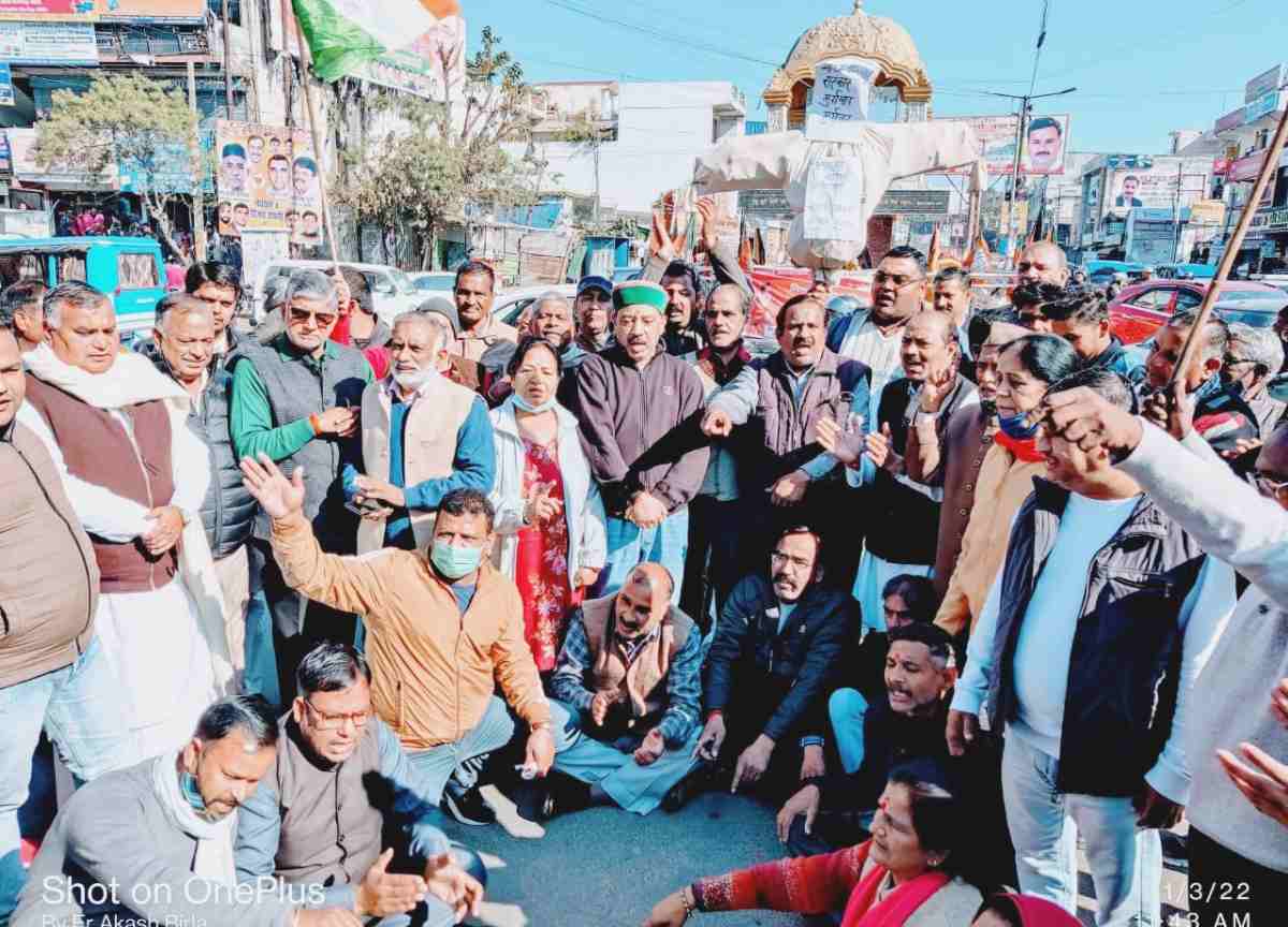 इस अवसर पर प्रदेश महासचिव डॉ संजय पालीवाल जी ने कहा कि आज पूरे प्रदेश में महंगाई चरम सीमा पर है। सरकार की गलत नीतियों के कारण कारखाने बंद हो रहे हैं जिससे बेरोजगारी बढ़ रही है तथा भाजपा सरकारें भ्रष्टाचार में डूब चुकी हैं। महानगर अध्यक्ष संजयअग्रवाल ने कहा कि आज पूरे प्रदेश में हालात बद से बदतर हो गए हैं। बढ़ती महंगाई से जनता त्रस्त हो चुकी है। महिलाओं का एक समय का चूलहा नहीं जल रहा।जीरो टालरैंश की सरकार में ढाई साल जेल में बिताने वाले आयुष विभाग के अधिकारी को बहाल करके उसको उसी पद पर आसीन करने का कार्य किया है। पैसे के लालच में सभी ने अपना जमीर बेच दिया है। महिला जिलाध्यक्ष विमला पांडे तथा ग्रामीण जिलाध्यक्ष धर्मपाल सिंह ने कहा कि भाजपा की गलत नीतियों के कारण उद्योग धंधे बंद हो रहे हैं। बड़े उद्योगों पर छापे डालने का कार्य किया जा रहा है उनको डरा धमकाकर दबाव बनाया जा रहा है। तमाम कारोबारी अपना कारोबार बंद करके जा चुके हैं। ऐसे में बेरोजगारी में विकराल रूप ले लिया है। पूर्व पालिका अध्यक्ष सतपाल ब्रह्मचारी, पूर्व राज्यमंत्री नईम कुरैशी व पूर्व पालिकाध्यक्ष प्रदीप चौधरी ने कहा कि आज हर विभाग में बिना रिश्वत दिए कोई कार्य नहीं हो रहा है। जीरो टॉलरेंस की सरकार में खुलेआम रिश्वत का बाजार बन चुका है। युवा नेता विशाल राठौर तथा अनिल भास्कर ने कहा कि केंद्र की भाजपा सरकार तथा प्रदेश की भाजपा सरकार दोनों मिलकर जनता को ठगने का कार्य कर रही हैं उनका पैसा लूट कर उन को बेवकूफ बनाया जा रहा है। आने वाले चुनाव में जनता अपने एक-एक वोट से इसका जवाब देगी तथा इस भाजपा सरकारों को उखाड़ने का कार्य करेगी। कार्यक्रम में पूर्व विधायक रामयश सिंह, पूर्व सभासद अशोक शर्मा, नगर ज्वालापुर अध्यक्ष यसवंत सैनी, ब्लॉक अध्यक्ष गण शैलेंद्र सिंह, शुभम अग्रवाल, गुलबीर सिंह, कैलाश प्रधान के अतिरिक्त आशीष गोस्वामी, युवा नेता कैस खुराना, दिनेश पुंडीर, जितेंद्र सिंह, महासचिव रचित अग्रवाल, कोषाध्यक्ष नवेज,अंसारी, विभाष मिश्रा, बी एस तेजियान, अंजु द्विवेदी, सुषमा सहगल, सईदा कुरेशी, संजीव चौधरी, हाजी रफी खान, हाजी साहबुद्दीन, इंजीनियर आकाश बिरला, राजेंद्र बालियान, हरद्वारी लाल, मनोज जाटव, सुभान कुरैशी, सुनील कुमार सिंह, सतेंद्र वशिष्ठ, ब्रजमोहन, अमित राजपूत, आकाश भाटी, ओंम मलिक, मेनपाल गौतम, विपिन पैवल, मनोज सैनी, जटाशंकर श्रीवास्तव, वीरेंद्र भारद्वाज, संजय मुखिया, उदित विद्याकुल, शिव कुमार जोशी, सतपाल शास्त्री, राजेंद्र श्रीवास्तव, मुकेश सैनी, रवि पाल सैनी, हरिशंकर प्रसाद, हरद्वारी लाल, राजेश चौहान, नरेश कुमार, अंकित सैनी, रवि भूषण जोशी,अमित मंगोलिया, अंकित सैनी, सोनी प्रजापति आदि अनेक कांग्रेसजन उपस्थित रहे।