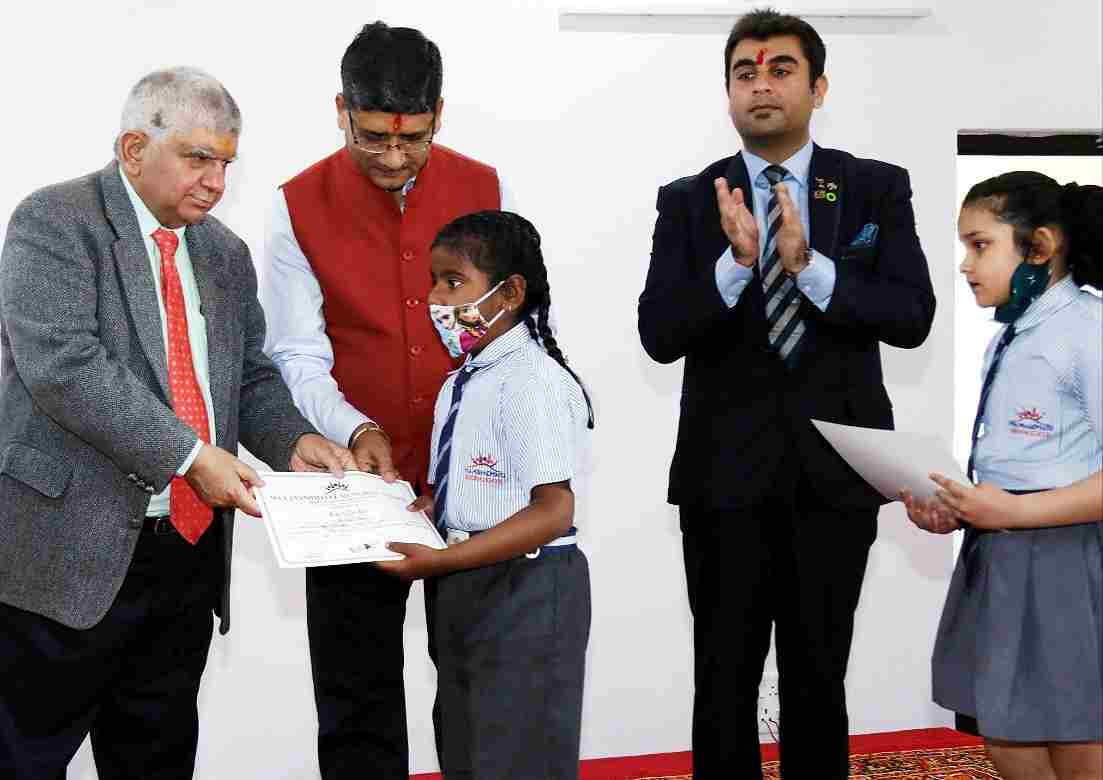 रायवाला। माँ आनन्दमयी मेमोरियल विद्यालय रायवाला में कोविड नियमों का पालन करते हुए वार्षिकोत्सव उल्लास मनाया गया। इस अवसर पर मेरिट में आने वाले नन्हे छात्र-छात्राएँ पारम्परिक डिग्री उपाधि गाऊन में वार्षिकोत्सव में आये जिन्हे मुख्य अतिथियों ने मैडल व पुरस्कार से अलंकृत किया। मुख्य अतिथि अखिल भारतीय आयुर्विज्ञान संस्थान (ऋषिकेश) के निदेशक प्रोफेसर डा0 रवि कांत व केन्द्रीय माध्यमिक शिक्षा बोर्ड (सीबीएसई) के क्षेत्रीय अधिकारी रणबीर सिंह रहे। कार्यक्रम का शुभारंभ दीप प्रज्वलन के साथ हुआ।इसके उपरान्त नर्सरी व के.जी. कक्षा के विद्यार्थियो ने स्वागत गीत प्रस्तुत किया। अपने संबोधन में एम्स के निदेशक ने कोविड काल मे विद्यार्थियो के स्वास्थ्य पर विशेष बल दिये जाने पर जोर दिया।उन्होने माँ आनन्दमयी मेमोरियल विद्यालय प्रबंधन की मुक्तकंठ से प्रशंसा की। वहीं सीबीएसई के क्षेत्रीय अधिकारी रणबीर सिंह ने नई शिक्षा नीति को बेहतरीन व प्रासंगिक करार दिया।