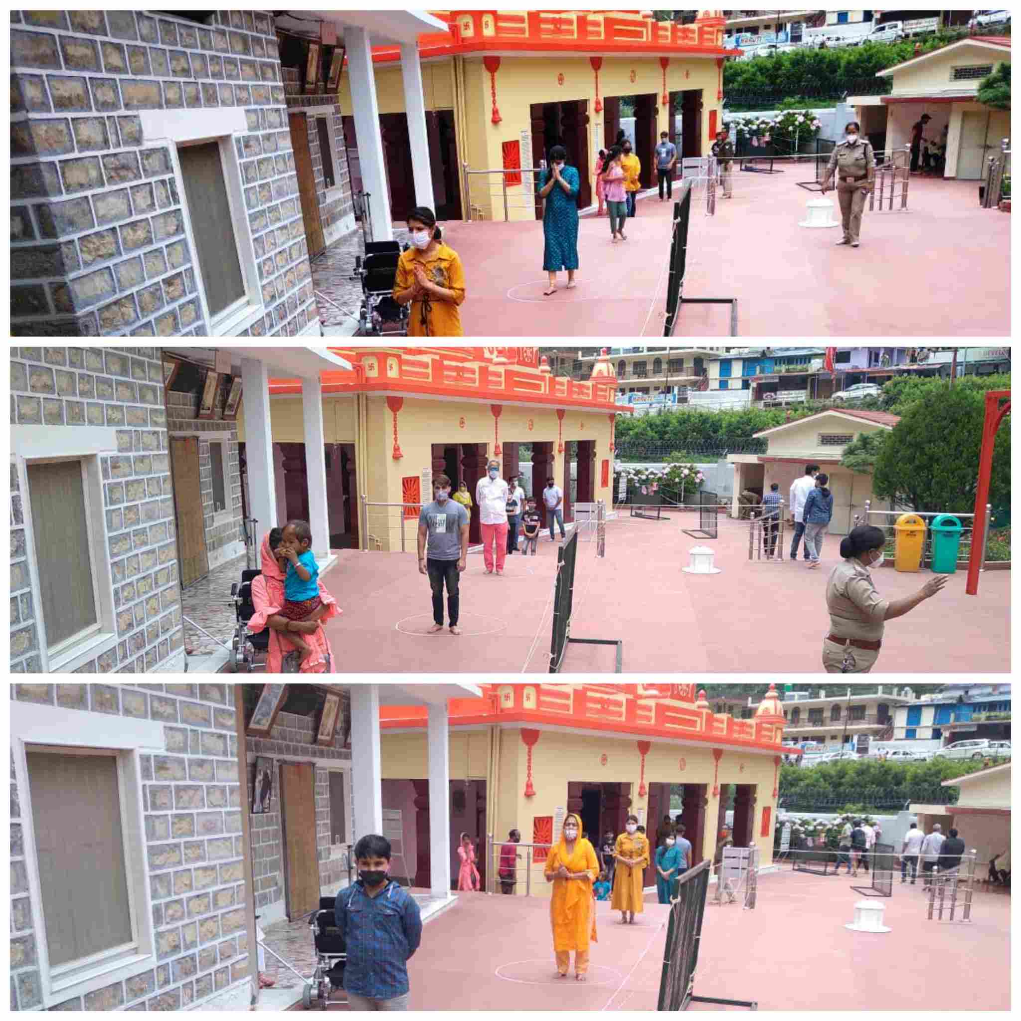 नैनीताल। कोविड कर्फ्यू के दौरान दर्शनार्थियों के लिए लम्बे समय से बन्द आस्था के प्रतीक नीम करौली बाबा मन्दिर को लोगों के दर्शनार्थ खोल दिया गया है। जानकारी देते हुये जिलाधिकारी धीराज सिह गर्व्याल ने बताया कि कोरोना की दूूसरी लहर के चलते संक्रमण को रोकने के लिए एतिहातिक तौर पर मन्दिर मे दर्शनार्थियों के प्रवेश को रोकने के उददेश्य से मन्दिर को बन्द किया गया था। उन्होने बताया कि कोरोना का संक्रमण मे काफी गिरावट आयी है जिसको दृष्टिगत रखते हुये नीम करौली बाबा मन्दिर एवं आश्रम मे दर्शनार्थियों के प्रवेश पर लगी रोक हटा दी गई है तथा विगत मंगलवार से मन्दिर मे प्रवेश की अनुमति दे दी गई है। जिसके चलते दर्शनार्थी मन्दिर मे जा रहे है। उन्होने बताया कि कैची धाम मन्दिर भवाली मे कोविड 19 महामारी के दृष्टिगत सामाजिक दूरी के अनुपालन के लिए निर्धारित दूरी पर गोले बनवाये गये हैं। दर्शन को आने वाले लोग इन गोलों मे खडे किये जा रहे है जिससे सामाजिक दूरी के मानक का अनुपालन किया जा रहा है। इसके साथ मन्दिर परिसर में आने वालों को सेनेटाइज किया जा रहा है तथा मास्क लगाने की अनिवार्यता का भी अनुपालन किया जा रहा है। बिना मास्क के कैची धाम परिसर मे अनुमति नही है।