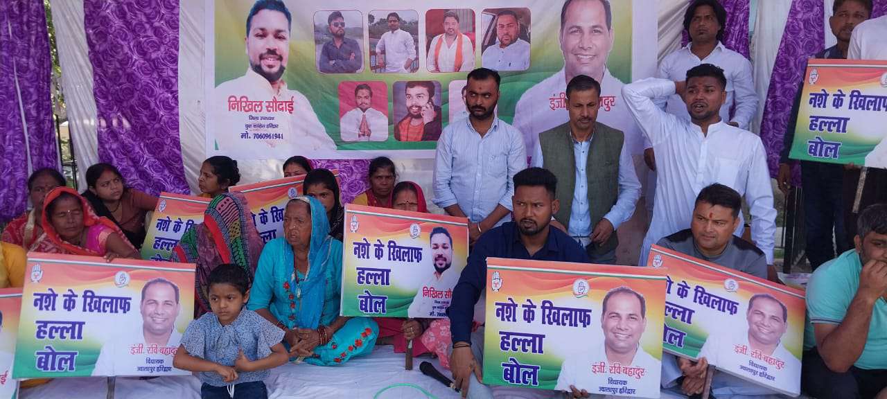 हरिद्वार। युवा कांग्रेस के जिला उपाध्यक्ष निखिल सौदाई के नेतृत्व और विशाल प्रधान, सागर बेनीवाल, मोनू के साथ नशे से पीड़ित महिलाओं के साथ धरना दिया। धरने में पूर्व राज्यमंत्री नईम कुरैशी, कांग्रेस प्रदेश महासचिव अनिल भास्कर, प्रदेश प्रवक्ता हिमांशु बहुगुणा भी शामिल हुए।