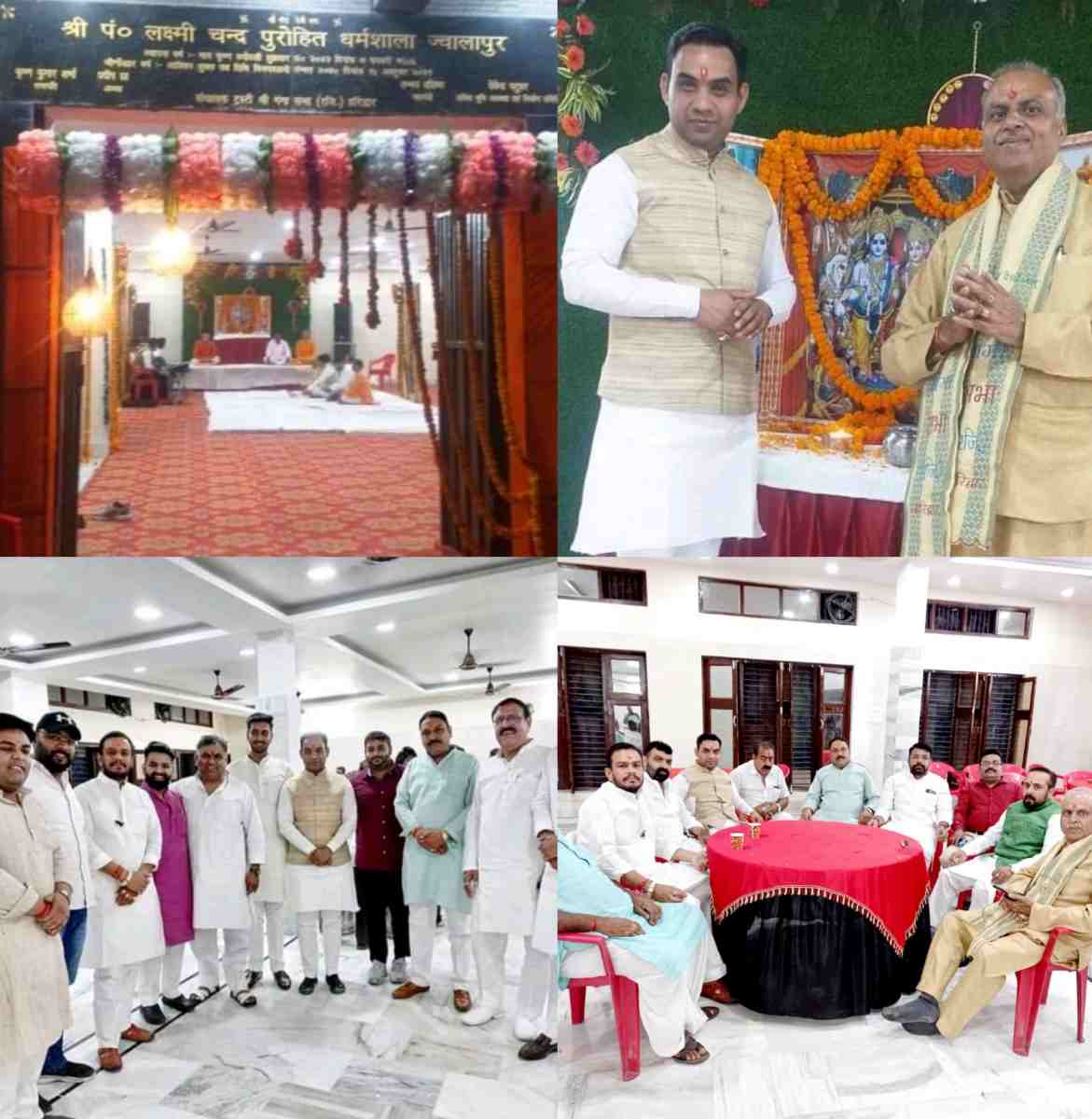 हरिद्वार। तीर्थ पुरोहितों की प्रमुख संस्था श्री गंगा सभा के द्वारा ज्वालापुर के मोहल्ला दलालान स्थित पंडित लक्ष्मीचंद पुरोहित धर्मशाला का जीर्णोद्धार एवं सौंदर्यकरण का कार्य पूर्ण कराने के पश्चात उसे जनता के लिए समर्पित कर दिया गया है। इस शुभ अवसर पर गंगा सभा के अध्यक्ष प्रदीप झा एवं महामंत्री तन्मय वशिष्ठ ने जानकारी देते हुए बताया कि कुछ समय से ज्वालापुर स्थित लक्ष्मीचंद पुरोहित धर्मशाला जीर्ण शीर्ण अवस्था में पड़ी हुई थी तथा जिसका काफी समय से सदुपयोग नहीं हो पा रहा था जिस पर गंगा सभा ने तत्परता एवं तेजी से कार्य कराते हुए धर्मशाला का जीर्णोद्धार व नवीनीकरण कार्य करा कर अब इसे सामाजिक कार्यों के लिए जनता को समर्पित करते हुए इसे खोल दिया गया है। वही गंगा सभा द्वारा धर्मशाला का नवीनीकरण एवं सौंदर्यीकरण का कार्य कराए जाने के पश्चात अब धर्मशाला पहले से काफी आधुनिक एवं सुंदर रूप से तैयार हो गई है। जिसमें सभी प्रकार की सुविधाएं मुहैया कराई गई है। जिसके चलते अब सभी लोग अपने अपने यहां होने वाले शादी विवाह एवं अन्य धार्मिक समारोह के कार्यक्रम धर्मशाला की बुकिंग कराने के पश्चात कर सकेंगे।