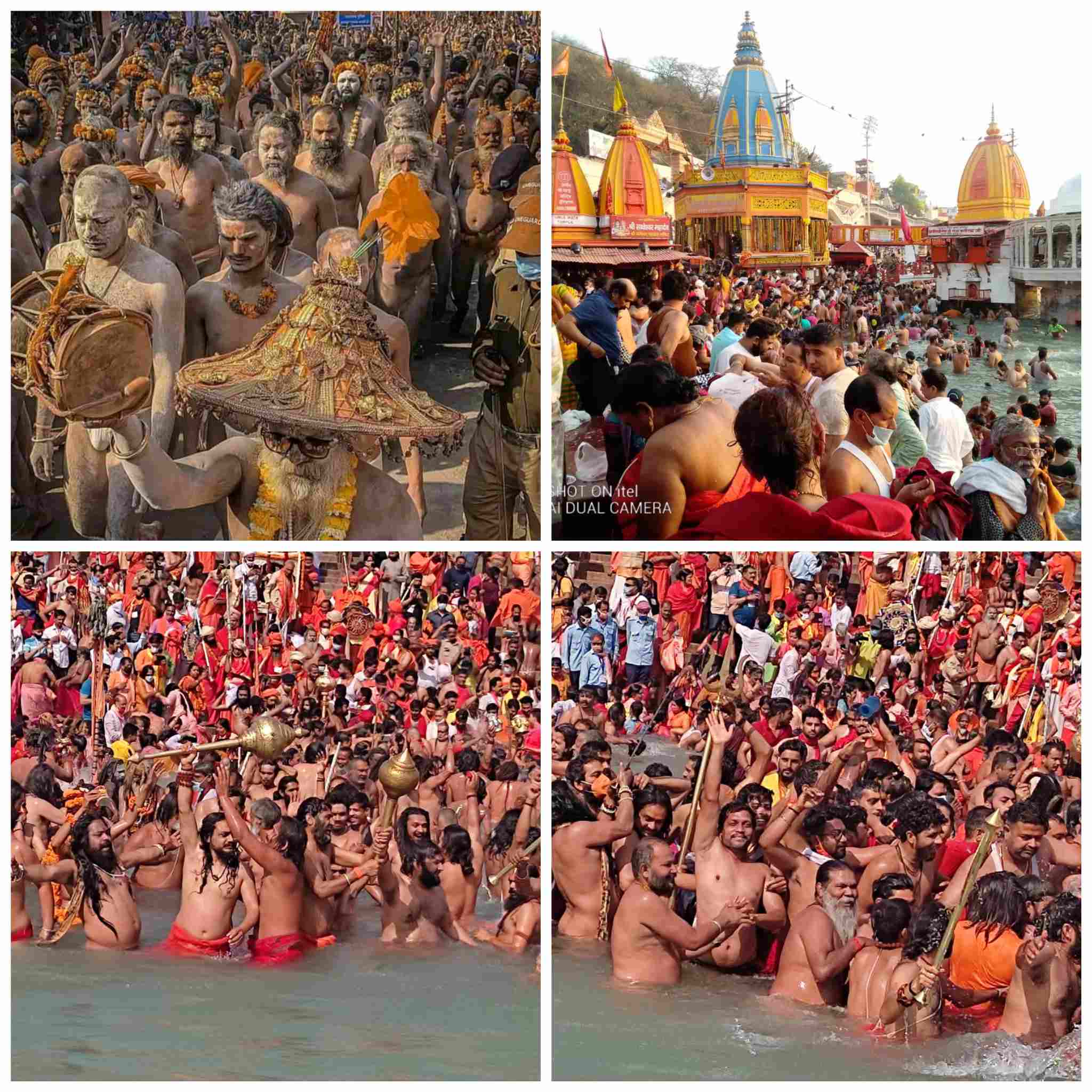 आपको बता दें कि पूर्व निर्धारित तय क्रम अनुसार आज सुबह सर्वप्रथम श्री पंचायती अखाड़ा निरंजनी ने अपने सहयोगी आनंद अखाड़े के नागा साधु संतों के साथ हर की पौड़ी ब्रह्मकुंड पर पहुंचकर कुंभ का तीसरा शाही स्नान कर लिया है। कुंभ मेला प्रशासन द्वारा की गई चाक-चौबंद सुरक्षा व्यवस्था के बीच श्री पंचायती निरंजनी अखाड़े की पेशवाई आज सुबह अपनी छावनी से प्रारंभ होकर सुबह 9:00 बजे अखाड़े के आचार्य महामंडलेश्वर कैलाशानंद गिरी की अगुवाई में हर की पौड़ी पर पहुंची। हर हर महादेव हर हर गंगे के उद्घोष करते हुए उनके साथ आए सहयोगी आनंद अखाड़े ने संयुक्त रुप से गंगा के पवित्र जल में डुबकी लगाते हुए कुंभ का तीसरा शाही स्नान कर लिया है। स्नान क्रम में दूसरे नंबर पर जूना अपने सहयोगी अग्नि आह्वान और उनके साथ आए किन्नर अखाड़ा के साथ शाही स्नान करेगा। वहीं तीसरे नंबर पर महानिर्वाणी अखाड़ा अटल अखाड़ा के साथ शाही स्नान करेगा। इसके बाद क्रमवार बैरागी यो के निर्मोही दिगंबर और निर्वाणी अखाड़ों के संत शाही स्नान करेंगे। तत्पश्चात बड़ा उदासीन नया उदासीन के बाद सबसे आखिर में शाम को निर्मल अखाड़े के संत शाही राजसी ठाठ बाट के साथ हर की पौड़ी पर कुंभ का तीसरा शाही स्नान करेंगे। आपको बताते चले कि ज्योतिषीय दृष्टि से आज देव स्नान शुरू हो चुका है। इस बारे में तीर्थ पुरोहित समाज के ज्योतिषाचार्य पंडित प्रतीक मिश्र पुरी ने विस्तार पूर्वक जानकारी देते हुए बताया अखाड़े के संतों के स्नान क्रम की तरह देवताओं का भी तिथि के अनुसार कुंभ स्नान होता है। उन्होंने बताया 14 अप्रैल आज बुधवार से देवों का कुंभ स्नान आज से शुरू हो चुका है जोकि 14 मई तक चलेगा। 14 अप्रैल द्वितीय तिथि पर ब्रह्मदेव अमृत की होरा में अपने परिवार सहित गंगा में स्नान करने आएंगे। अत: जो भी श्रद्धालु भक्तगण इस दिन गंगा में स्नान करेंगे उन्हें अमृत तत्व की प्राप्ति होगी।