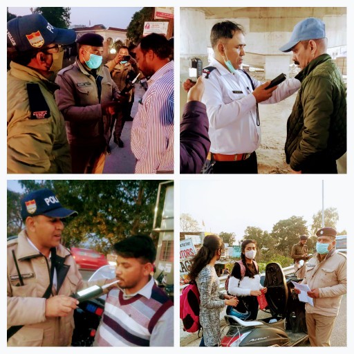 हरिद्वार। एसएसपी हरिद्वार के निर्देशों के क्रम में जनपद हरिद्वार में पुलिस उपाधीक्षक यातायात हरिद्वार राकेश रावत के नेतृत्व में जनपद हरिद्वार में शहर क्षेत्र में निरीक्षक यातायात विकास पुंडीर एवं सीपीयू हरिद्वार तथा रुड़की में निरीक्षक यातायात अखिलेश कुमार एवं सीपीयू रुड़की के द्वारा मोटर व्हीकल एक्ट के अंतर्गत कार्यवाही करते हुए बिना हेलमेट के 29 वाहन चालकों, दुपहिया वाहन पर पिछली सवारी द्वारा हेलमेट धारण न करने पर 13 वाहन चालकों, दोषपूर्ण नंबर प्लेट पर 28 वाहन चालकों, सीट बेल्ट धारण करने पर 44 वाहन चालकों तथा वाहन चलाते समय मोबाइल फोन का प्रयोग करने पर 10 वाहन चालकों, ड्रंकन ड्राइव में 06 वाहन चालकों के विरुद्ध