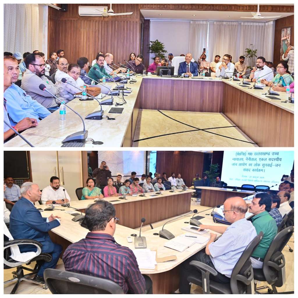 कथित नकल के आरोपों के सम्बन्ध में सेवानिवृत मा0 न्याय मूर्ति श्री यूसी ध्यानी ने एचआरडीए सभागार में की जन सुनवाई।