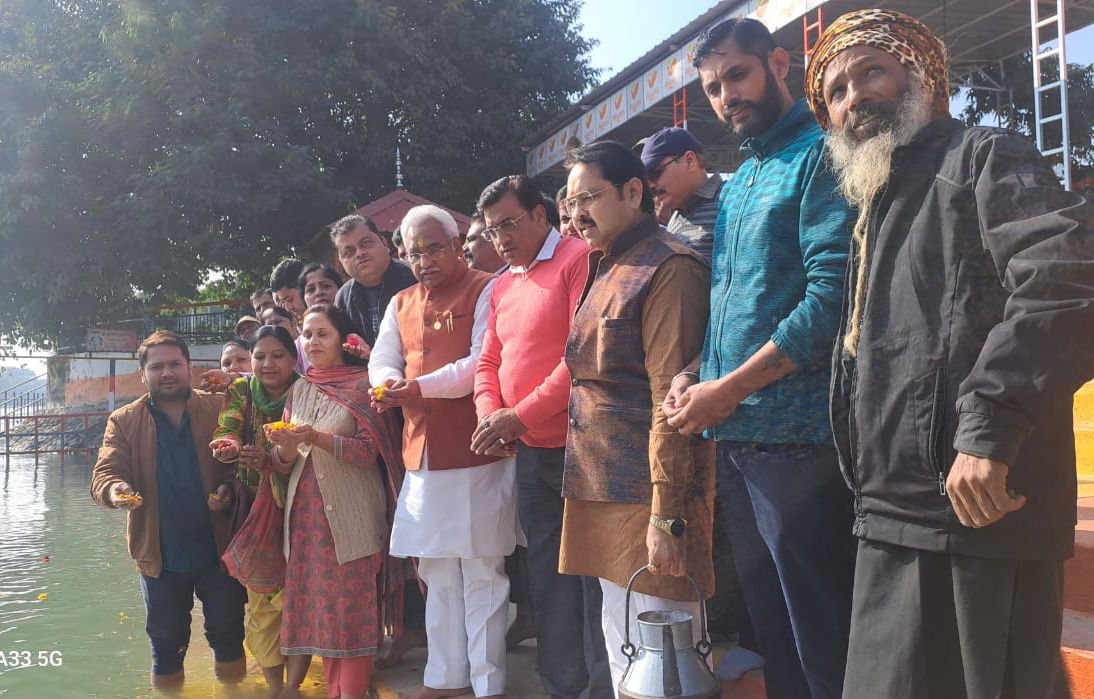 हरिद्वार। उत्तरकाशी के सिलक्यारा में निर्माणाधीन सुरंग में फंसे 41 श्रमिकों की सकुशल वापसी पर भाजपा कार्यकर्ताओं ने विधायक मदन कौशिक के नेतृत्व में अग्रसेन घाट पर मां गंगा का दुग्धाभिषेक किया। विधायक मदन कौशिक ने कहा कि सिलक्यारा में सुरंग में फंसे श्रमिकों की सकुशल वापसी का श्रेय राज्य के मुख्यमंत्री पुष्कर सिंह धामी और देश के प्रधानमंत्री नरेंद्र मोदी को जाता है।