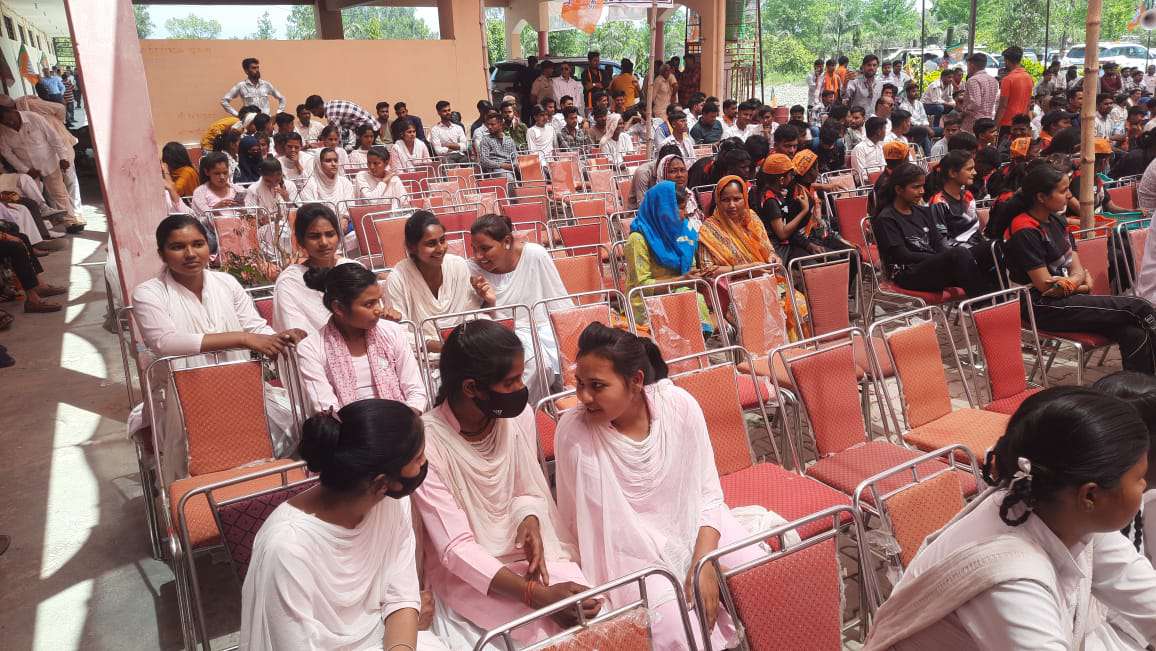 बताते चलें की हरिद्वार लोकसभा क्षेत्र में सैनी समाज के वोटों को प्रभावित करने के लिया हरियाणा के मुख्यमंत्री नायब सिंह सैनी स्टार प्रचारक के रूप में भोगपुर पहुंचे जहां मौके पर अन्य नेताओं ने अपनी सरकारों के कामकाज का जमकर बखान किया लेकिन जहाँ कार्यक्रम के मंच पर भाजपा के नेता विराजमान थे तो दूसरी तरफ खाली पड़ी हुई कुर्सियां भी भाजपा नेताओं को आइना दिखा रही थी। कार्यक्रम में खाली कुर्सियां भाजपा नेताओं को असहज करने लगी तो भाजपा नेताओं की कोशिशें के बाद स्कूल के बच्चों से खाली कुर्सियों को भरने का प्रयास किया गया।