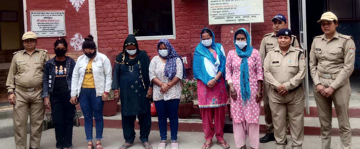 विगत कुछ दिनों से स्थानीय लोगो द्वारा बस स्टेशन, रेलवे गेट के पास कुछ बाहरी महिलाओं द्वारा यात्रियों को अश्लील इशारे कर अपने तरफ आकर्षित करने संबंधी शिकायत मिल रही थी। जिस पर कोतवाली नगर पुलिस द्वारा आज टीम गठित कर रेलवे गेट न0 5 के पास से 6 महिलाओं अनीता (काल्पनिक नाम) निवासी धीर वाली, कोतवाली-ज्वालापुर, हरिद्वार हाल पता-झंडा चौक, जमालपुर, थाना-कनखल, हरिद्वार उम्र-28 वर्ष, सुनीता (काल्पनिक नाम) निवासी ग्राम मलेल कोटला, जिला -संगरूर, पंजाब हाल पता- पीठ की पुलिया,जगजीतपुर, थाना-कनखल, हरिद्वार उम्र-25 वर्ष, रूबी (काल्पनिक नाम) निवासी ग्राम झोपडी पारा, विलासपुर, छतीसगढ हाल पता- c/0 गोलू गंदे नाले के पास ऋषिकुल, कोतवाली-नगर हरिद्वार उम्र-40 वर्ष, रेशमा (काल्पनिक नाम) निवासी स्टेट बैंक चौराहा, सुभाषनगर, मथुरा उत्तर प्रदेश उम्र-26 वर्ष हाल- वीरभद्र स्टेशन के पास ऋषिकेश देहरादून, बबीता (काल्पनिक नाम) निवासी गली नं0-6, गोलघर, राउरकेला,उडीसा हाल पता- गली नं0-20, गुमानी वाला, ऋषिकेश, देहरादून उम्र- 24 वर्ष, कल्पना (काल्पनिक नाम) निवासी रायपुरखास उर्फ कोर्ट सराय, पो0 नागलसोती भागूवाला, बिजनौर हाल पता- रेलवे स्टेशन के पास, हरिद्वार उम्र-60 वर्ष को सार्वजनिक स्थानो पर अश्लील इशारे कर करते गिरफ्तार कर अग्रिम वैधानिक कार्यवाही की गई।