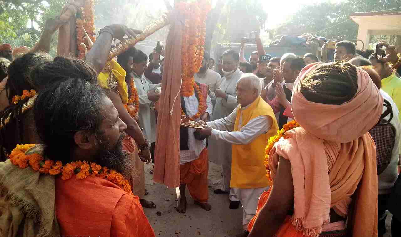 आह्वान अखाड़े के पंच परमेश्वरो के पांडे वाला में पहुंचने पर हुआ भव्य स्वागत, लोगों ने की पुष्प वर्षा