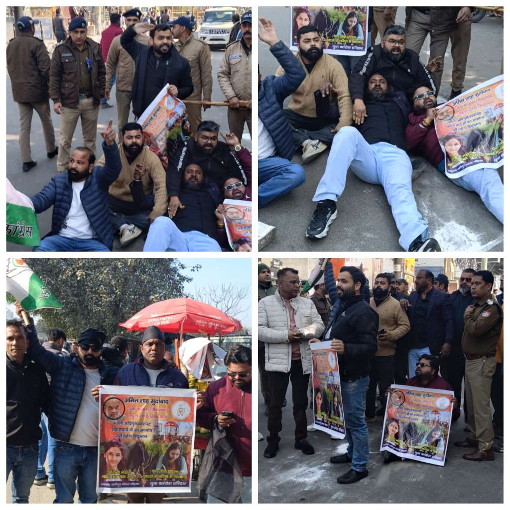 गृह मंत्री अमित शाह के खिलाफ कांग्रेसियों का प्रदर्शन, गिरफ्तार।