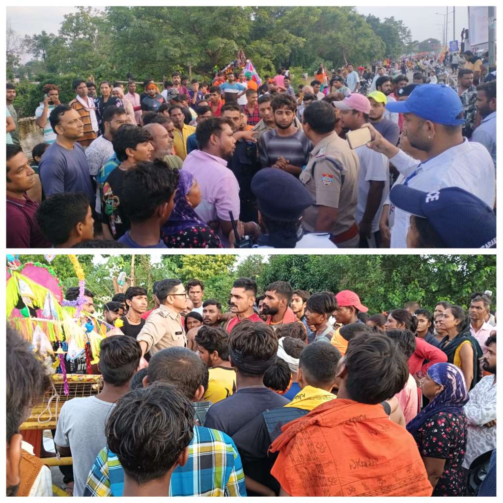 जानकारी के अनुसार गुरुकुल कांगडी विश्व विद्यालय के आगे सर्विस लेन पर जिन लोगों द्वारा एनएचएआई की जमीन पर अतिक्रमण कर लगाई गई दुकाने लगाई गई थी कावड मेले के दृष्टिगत एनएचएआई,नगर निगम व पुलिस प्रशासन ने हटवायी थी। उक्त दुकान वालों के द्वारा सिंहद्वार फ्लाईओवर के ठलान के पास हाईवे पर जाम लगा दिया है। सूचना पाकर थाना कनखल से पुलिस बल मौके पर पंहुचा तो हाईवे जाम लगा हुआ था काफी भीड भाड थी व कावडिये भी मौजूद थे। भीड मे मौजूद महिलाएं जोर जोर से पुलिस प्रशासन को अपशब्द कहते हुए कावडियों को भडका रही थी कि इन पुलिसवालों ने हमारी दुकाने हटा दी है। हमने ये दुकाने भोलों की सेवा के लिए लगायी थी। इन बातों से मौके पर कावडिया भी तैस मे आ गये। पुलिस ने काफी समझा बुझाकर कावडियों को उनके गंतव्य को रवाना किया गया व 20-25 अज्ञात महिलाएं व 10-15 पुरुष के द्वारा उनकी दुकान हटाई जाने का का विरोध करते हुये पुलिस के साथ अभद्रता की गयी व हाईवे पर जाम लगाये रखा जिससे यातायात प्रभावित हुआ आने जाने वाले यात्रियों को काफी परेशानी का सामना करना पडा। पुलिस द्वारा काफी प्रयास करते हुए यातायात को सुचारू रूप से चलाया गया व हाईवे जाम करने के सम्बन्ध मे 20-25 महिलाओं व 10-15 पुरुषों के विरुद्व कार्यवाही करते हुए थाना कनखल पर मु0अ0स0 210/24 धारा 285.126(2) B.N.S पंजीकृत किया गया। अभियुक्त गणो को फोटोग्राफी / विडियोग्राफी के आधार पर चिन्हित करते हुए अग्रिम कार्यवाही की जाएगी।