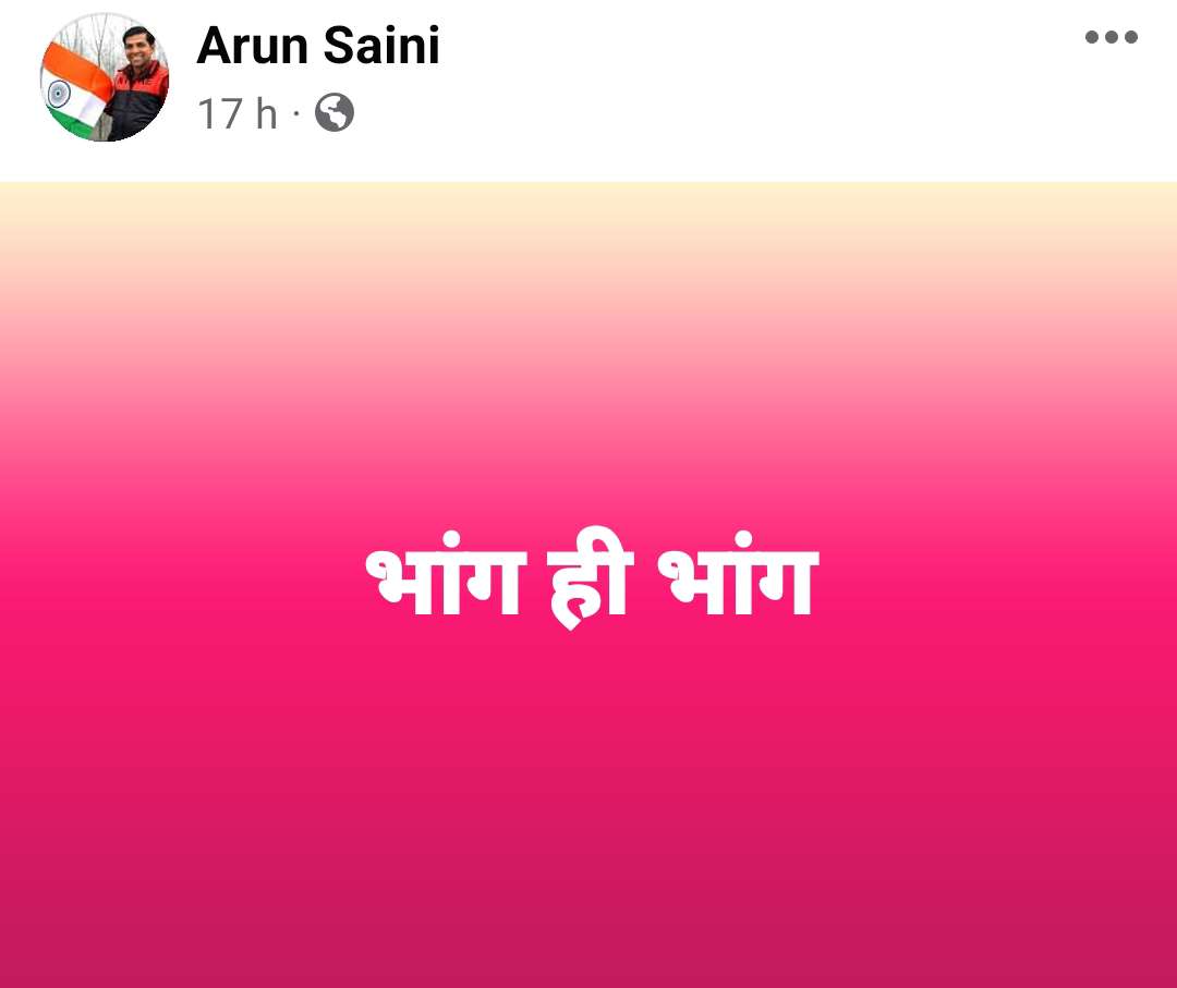 संघ से जुड़े अरुण सैनी लिख रहे हैं “भांग ही भांग” और साथ में हरिद्वार सीट तो गई भैया।