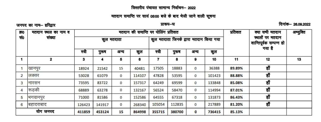 मनोज सैनी हरिद्वार। जिला मजिस्ट्रेट/ जिला निर्वाचन अधिकारी (पं0) त्रिस्तरीय पंचायत सामान्य निर्वाचन - 2022 श्री विनय शंकर पाण्डेय ने...