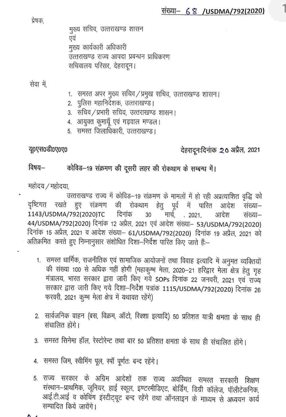 मनोज सैनी देहरादून। उत्तराखण्ड में बढ़ते कोरोना संक्रमण को देखते हुए उत्तराखण्ड शासन की और से मुख्य सचिव ओम प्रकाश...