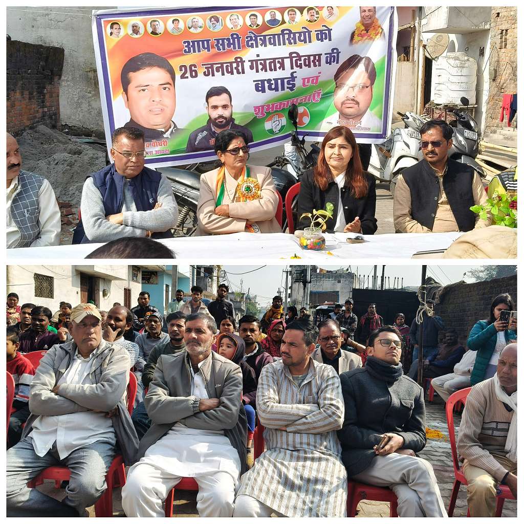 कांग्रेस के पूर्व जिलाध्यक्ष राजीव चौधरी और प्रदेश सचिव पूनम भगत ने कहा कि हमारा संविधान, विश्व इतिहास में आज तक के सबसे बड़े गणराज्य का आधार-ग्रंथ है। हमारे संविधान में निहित न्याय, स्वतन्त्रता, समता और बंधुता के आदर्श हमारे गणतन्त्र को परिभाषित करते हैं। संविधान निर्माताओं ने राष्ट्रीयता की भावना तथा देश की एकता को संवैधानिक प्रावधानों का सुदृढ़ आधार प्रदान किया है। उन्होंने कहा कि आजादी के बाद पंडित जवाहर लाल नेहरू से लेकर डॉ मनमोहन सिंह के ने देश को नई ऊंचाईयों पर ले जाने का काम किया। आज आजादी का विरोध करने वाले देश में नफरत की राजनीति कर सत्ता में बैठकर बाबा साहब के संविधान को कुचलने का प्रयास कर रहे हैं। इस अवसर पर यशवंत सैनी, रवींद्र धीमान, असलम अली, असलम ख़ान, गुलबहार खान, रियाजुल, राजकुमार सैनी, तौकीर, डाक्टर महरबान, शाहनवाज खान, शारुख, साहिल अली सहित सैकड़ों लोग उपस्थित थे।