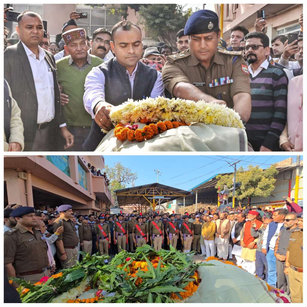 गार्ड ऑफ ऑनर एवं अंतिम सलामी देते हुए राजकीय सम्मान के साथ फील्ड मार्शल दिवाकर भट्ट को दी अंतिम विदाई।