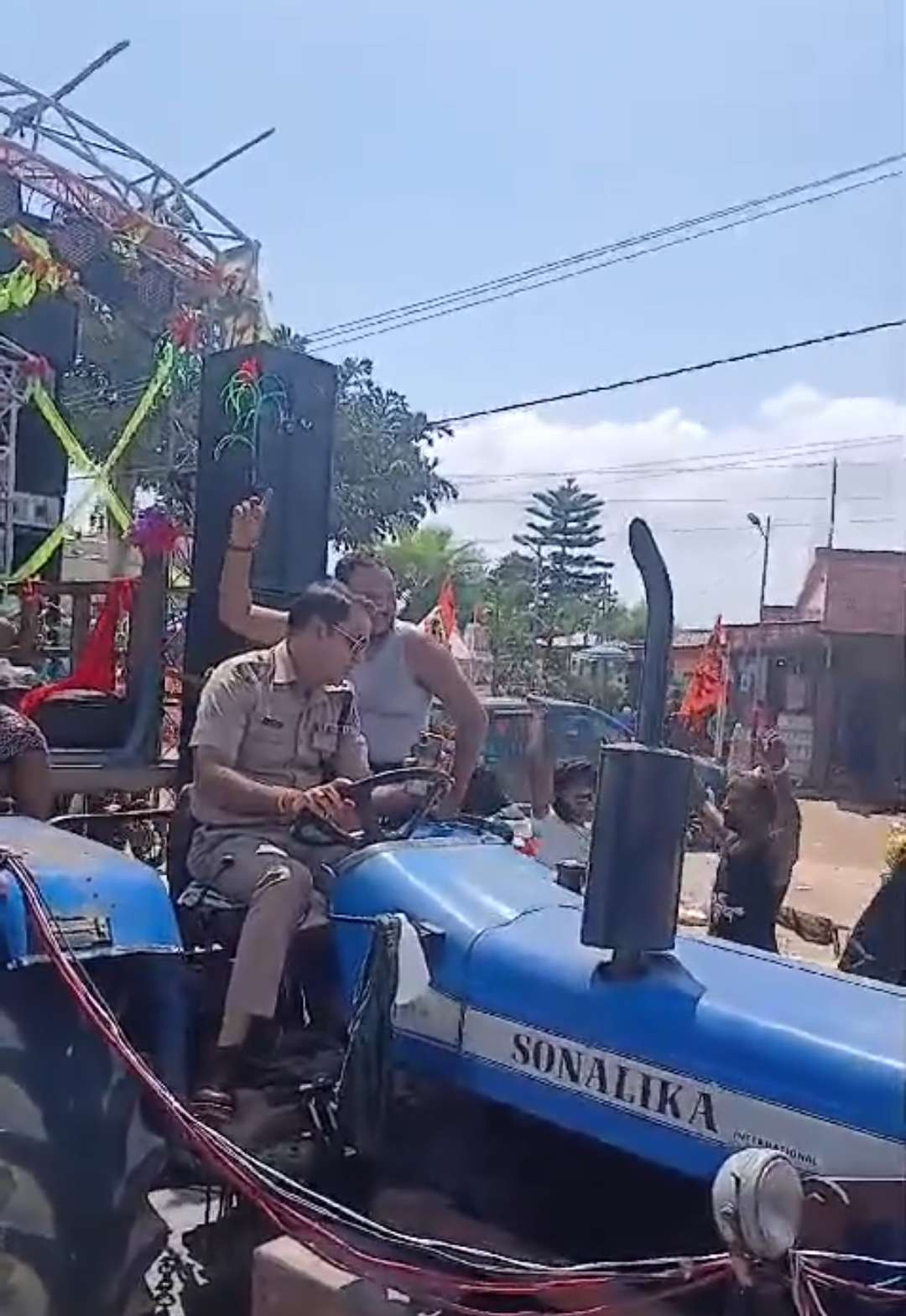 हरिद्वार। कांवड़ यात्रा जैसे-जैसे अपने तीसरे चरण में आगे बढ़ रही है वैसे-वैसे पुलिस के समक्ष नई-नई चुनौतियां सामने आ रही हैं। डाक कांवड़ियों की बड़ी-बड़ी गाड़ियां लगातार आ रही है किसी एक गाड़ी के थोड़ा रुकने पर काफी लंबी लाइन लग जा रही है। डाक कांवड़ यात्रा में पथरी क्षेत्रांतर्गत एक भोले की गाड़ी आगे नहीं बढ़ी तब पूछने पर बताया कि “ड्राइवर कहीं गया है और हम को चलानी आती नहीं, हम लोग खुद बहुत परेशान हैं” इस पर थानाध्यक्ष पथरी रविंद्र कुमार द्वारा स्वयं ट्रैक्टर चलाकर ट्रैफिक सुचारू किया गया।