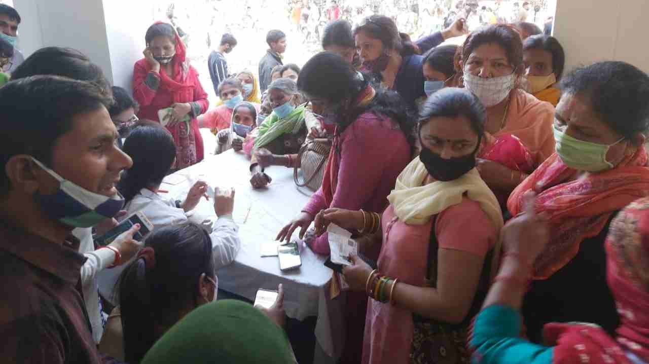 कोविड वैक्सीन लगवाने आये कर्मचारियों का कहना है की शुरू में तो ऑफलाइन किया गया लेकिन इसके बाद कोविन ऐप पर रजिस्ट्रेशन कराने की बात कही गयी। एकदम लोड पड़ने से सर्वर ठप हो गया। सुबह दस बजे से खड़े लोगों का तीन बजे तक रजिस्ट्रेशन और वैक्सीन नहीं लग पाई। कोरोना प्रोटोकॉल की बात करें तो जमकर धज्जियां उड़ रही है। सभी परेशान रहे। प्रशासनिक, स्वास्थ और पुलिस कोई इंतजाम नहीं। ये फोटो तो एक झलक भर है। बुरा हाल है। कोई सही जानकारी नहीं दे पा रहा है।