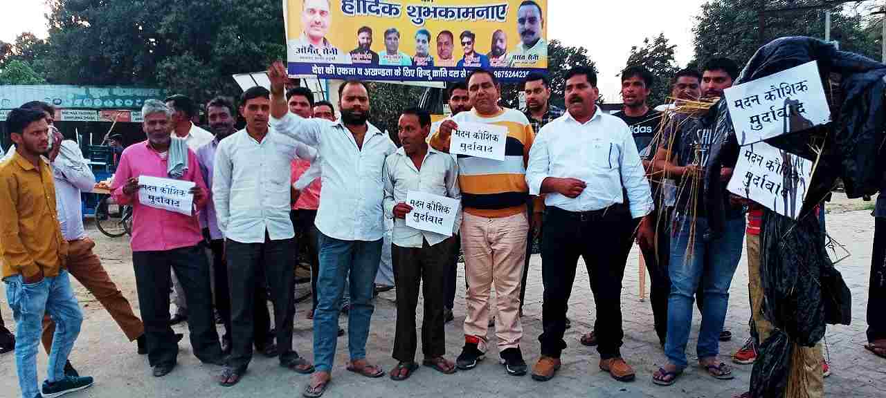 नाराज होने के बाद उन्होंने मदन कौशिक के खिलाफ प्रदर्शन करते हुए पुतला फूंका। पुतला फूंकने वालों में भारतीय किसान यूनियन के जिला अध्यक्ष अभिषेक सैनी, कांग्रेस युवा नेता संजय सैनी, भारतीय किसान यूनियन अंबावत कोषाध्यक्ष प्रवीण सैनी, सनकी सैनी, जिला सचिव आदेश सैनी, एडवोकेट बी डी कनवाल, विकास गिरी, बॉबी सुनार, सुभाष, शिव कुमार सैनी उर्फ सल्लू, शिवपाल, बबलू लाला, बाघ आदि ग्रामवासी मौजूद रहे।