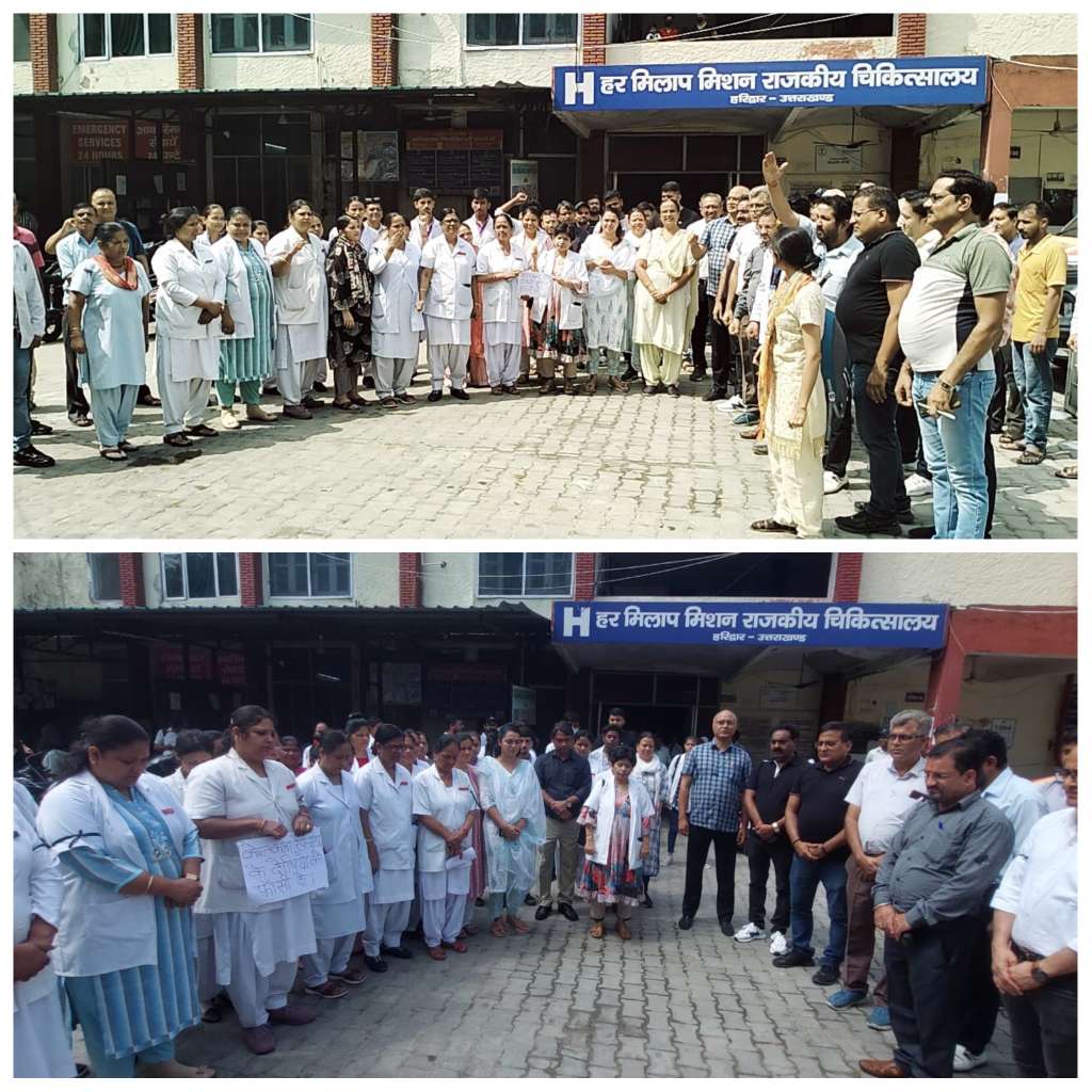 गौरतलब है आरजी कर मेडिकल कालेज, कोलकाता में एक चिकित्सक की वीभत्स हत्याकांड के विरोध में देशभर में डाक्टरों का विरोध प्रदर्शन जारी है। इस कड़ी में प्रांतीय चिकित्सा स्वास्थ्य सेवा संघ डाक्टरों के आंदोलन का समर्थन करते हुए शनिवार को 24 घंटे के हड़ताल की घोषणा की थी। पूर्व घोषणा के अनुसार शनिवार को सभी डाक्टर हड़ताल में शामिल हुए। हालांकि आकस्मिक सेवा जारी रही। डाक्टरों के हड़ताल का समर्थन करते हुए चर्तुथ श्रेणी राज्य कर्मचारी संघ, चिकित्सा स्वास्थ्य सेवाएं उत्तराखंड देहरादून ने प्रदेश व्यापी काला फीता बांधकर विरोध प्रदर्शन करते हुए चिकित्सा सेवा संवर्ग को समर्थन देकर उनके साथ विरोध प्रदर्शन किया। प्रदेश अध्यक्ष दिनेश लखेड़ा, प्रांतीय संगठन सचिव छत्रपाल सिंह, जिला मंत्री राकेश भंवर, प्रदेश प्रवक्ता राजेन्द्र तेश्वर, ऑडिटर महेश कुमार सहित सभी सदस्यों ने इस जघन्य हत्याकांड की घोर भर्त्सना करते हुए दोषियों को फांसी की सजा की मांग की। चिकित्सा स्वास्थ्य के साथ साथ ऋषिकुल राजकीय आयुर्वेदिक चिकित्सालय, कालेज के नर्सेज संवर्ग,चतुर्थ श्रेणी कर्मचारी, साथ ही बी ए एम एस के छात्रों ने भी अपना समर्थन व्यक्त करते हुए जल्द से जल्द सभी दोषियों को गिरफ्तार करने और फांसी देने की मांग की। काला फीती बांधकर विरोध प्रदर्शन करने वालों में डॉ. यशपाल तोमर अध्यक्ष पीएमएचएस हरिद्वार, डॉ. सीपी त्रिपाठी (पीएमएस), डॉ. राजेश गुप्ता (सीएमएस), डॉ. संदीप निगम, डॉ. आरवी सिंह, डॉ. सुब्रत अरोड़ा, डॉ. निष्ठा गुलाटी, डॉ. पूनम, डॉ. महेश्वरी, डॉ. अल्पना, डॉ. सोनी, डॉ. विकासदीप, डॉ. निशात, डॉ. स्वाति, डॉ. निशा एवं हरिद्वार के सभी अस्पताल जिला अस्पताल मेला अस्पताल एसडीएच रूड़की और सभी सीएचसी और पीएचसी के डॉक्टर नर्सिंग अधिकारी पैरामेसी अधिकारी चिकित्सक, नर्सिंग अधिकारी, लेब टेकनीसियन, एक्सरे टेकनीसियन, लिपिक, फार्मेसिस्ट, चतुर्थ श्रेणी कर्मचारी सम्मलित रहें।