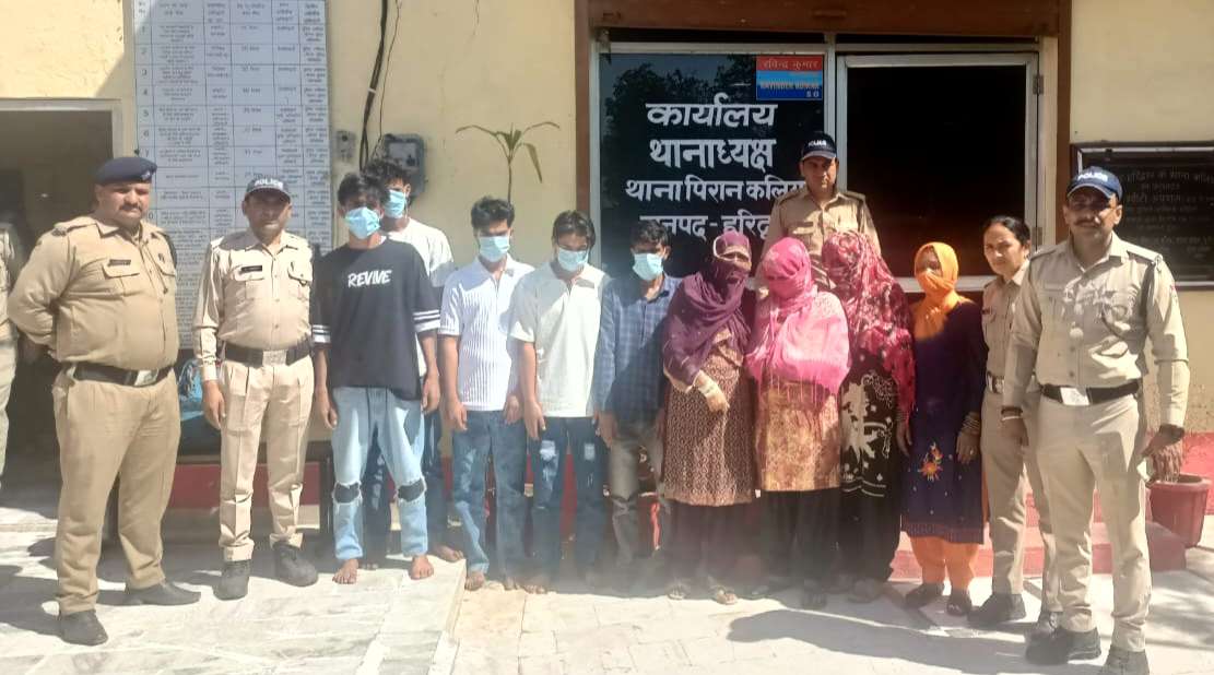 पुलिस से मिली जानकारी के अनुसार थाना कलियर और एंटी ह्यूमन ट्रैफिकिंग यूनिट की संयुक्त टीम ने गुप्त सूचना के आधार पर 31 मार्च की रात बॉबी इन्जॉय हेल्थ क्लब, नयी बस्ती, पिरान कलियर पर छापा मारकर हेल्थ क्लब से 4 महिलाएं 5 पुरुषों सुहैल पुत्र मुस्तकीम नि0 बन्दरजुड थाना बुग्गावाला हरिद्वार उम्र-22 वर्ष, मोनू उर्फ मकर सिंह पुत्र बीरबल निवासी मानक पुर थाना झबरेडा जिला हरिद्वार उम्र- 25 वर्ष, जुल्फकार पुत्र शकील निवासी बन्दरजुड थाना बुग्गावाला हरिद्वार उम्र-22 वर्ष, साहिल पुत्र वसीम निवासी नूर बस्ती मौहल्ला कस्बा व थाना झबरेडा जिला हरिद्वार उम्र- 20 वर्ष, शालीम पुत्र वसीम निवासी नूर बस्ती मौहल्ला कस्बा व थाना झबरेडा जिला हरिद्वार उम्र- 19 वर्ष को आपत्तिजनक सामग्री के साथ हिरासत में लिया। सभी आरोपित पर थाना पिरान कलियर पर अनैतिक देह व्यापार एक्ट के तहत अभियोग मु0अ0स0 105 /25 पंजीकृत किया गया।