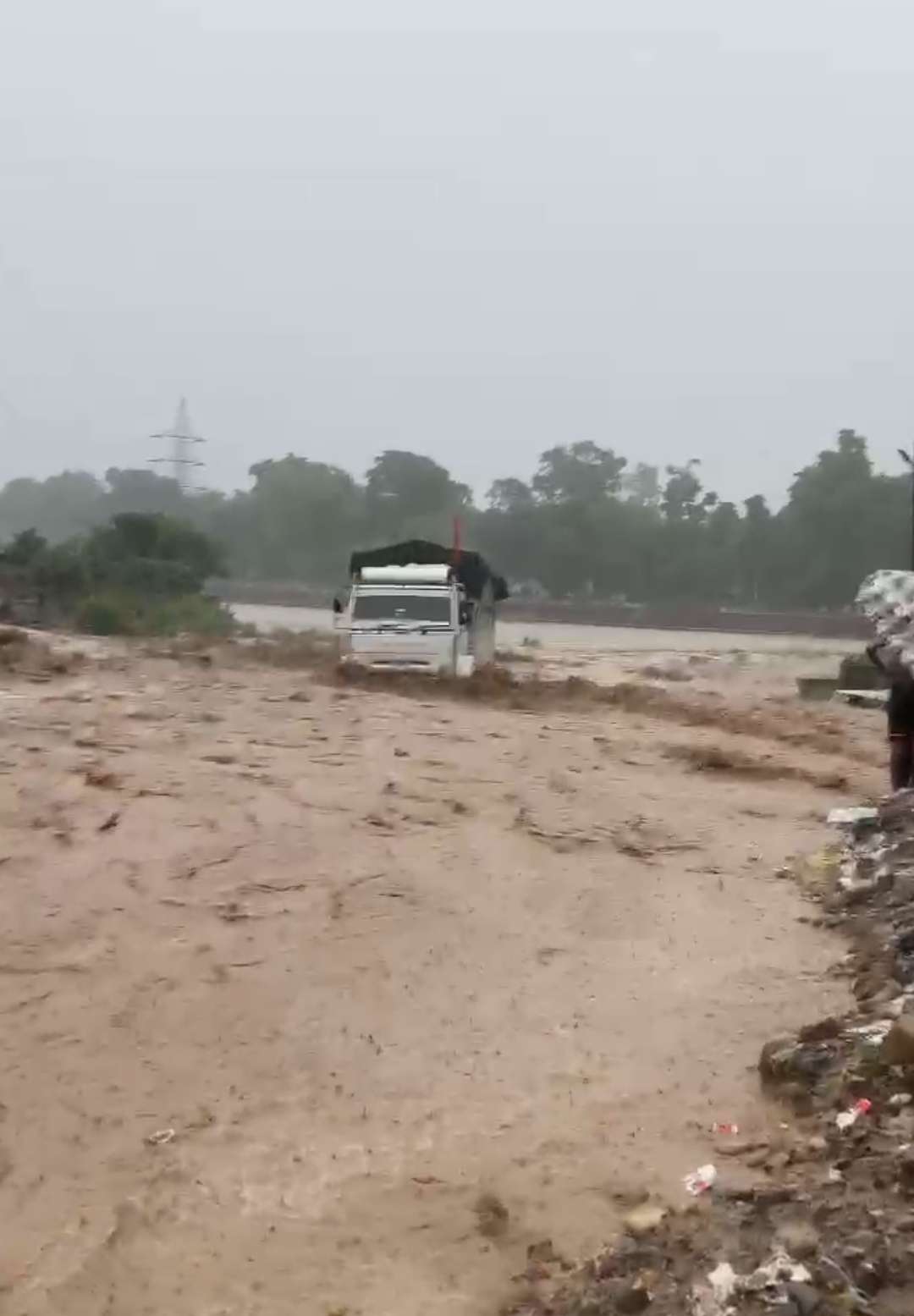 पिछले दिनों भारी बरसात के चलते खड़खड़ी शमशान घाट के पास बरसाती नदी में अचानक भारी बारिश का पानी आने से दर्जनों गाड़ियां गंगा जी में तैरती नजर आई थी, आज फिर उसी स्थान पर नदी में आए पानी के भारी बहाव से रास्ते पर खड़ा कावड़ियों का एक ट्रक गंगा में बह गया, जिसे निकालने के प्रयास जारी थे। ट्रक बहने की वीडियो सोशल मीडिया पर जमकर वायरल हुई।
