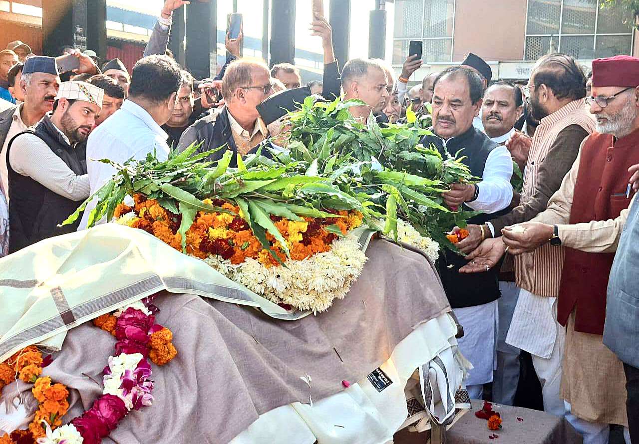 जिलाधिकारी मयूर दीक्षित एवं वरिष्ठ पुलिस अधीक्षक प्रमेंद्र सिंह डोभाल ने पुष्पचक्र अर्पित कर उन्हें नमन करते हुए अंतिम विधाई दी।